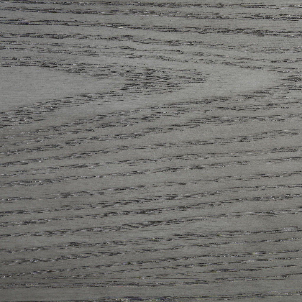 Infuse your bedroom with the soothing, earthy energy of beautiful wood with this modern bed. A soft gray finish lends contemporary flair and highlights the gorgeous grain details of oak veneer and rubberwood construction. The bed boasts a tall, square headboard, delivering impressive support and understated style in a master or guest suite. A low profile footboard reinforces its modern silhouette, while flared legs are a perfect hint of character. This bed does require a foundation for use.