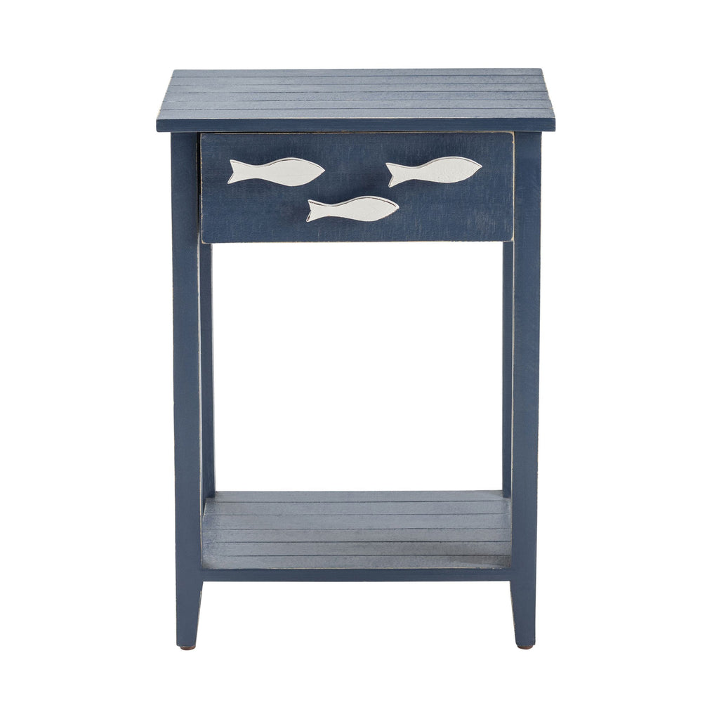 The deep blue sea is here in the Crestview Collection Nautical Navy 1-drawer Accent Table with Fish Hardware. This piece offers a deep blue fir wood finish that evokes the deep sea, and one hand storage drawer with lovely white fir wood finish drawer pulls for a splash of brightness. This piece radiates the energy of the ocean, with coastal style that brings a cheery feel to any room you choose.