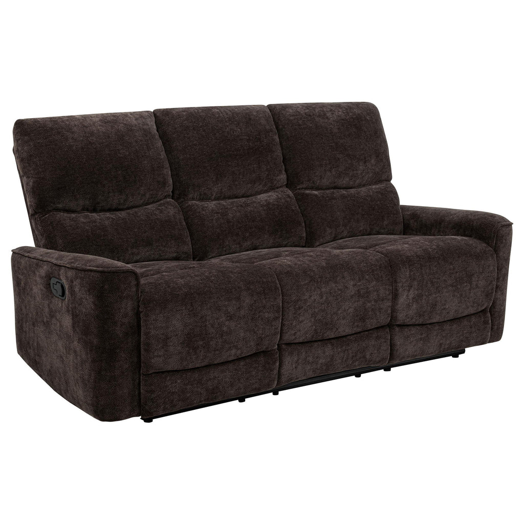 Crafted for comfort and connection, this reclining sofa set blends soft support with everyday ease. Deep cushions and channel-tufted backs provide gentle contouring, while smooth manual recline offers a personalized lounge experience. Wrapped in plush chenille and framed in durable wood and metal, each piece invites you to unwind with effortless comfort. Whether for quiet moments or shared spaces, it’s a set made for lasting relaxation.