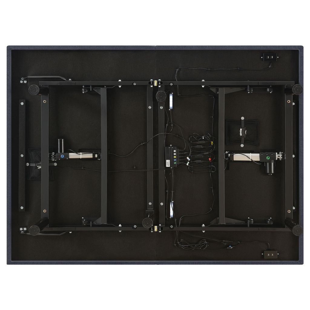 Revitalize yourself each and every night with this stunning multifunctional adjustable bed base with grey fabric trim and adjustable or removable legs. The bed base delivers the latest in modern technology with dual massage function on the head and foot of the bed, with three levels of intensity for optimal relaxation. The bed is equipped with a wireless remote that's backlit and gives full control of the height of the head and foot of the bed and includes presets for a most comfortable night's sleep. Each side of the bed is equipped with a dual USB port perfect for keeping bedside electronics charged and ready to use. You can even control the bed from your phone with Bluetooth connectivity and the Coaster app installed on your smart device. This premium adjustable bed base revolutionizes your bedroom into a relaxing multi-functional space and provides an abundance of features and customizable ergonomic positions to get great sleep and revitalize yourself.