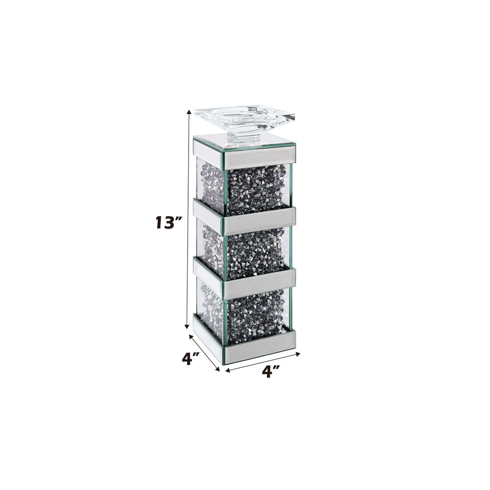 Noralie - 13" Candle Holder (Set of 2) - Mirrored & Faux Diamonds 4.0"W x 4.0"D x 13.0"H - 63.0 lb