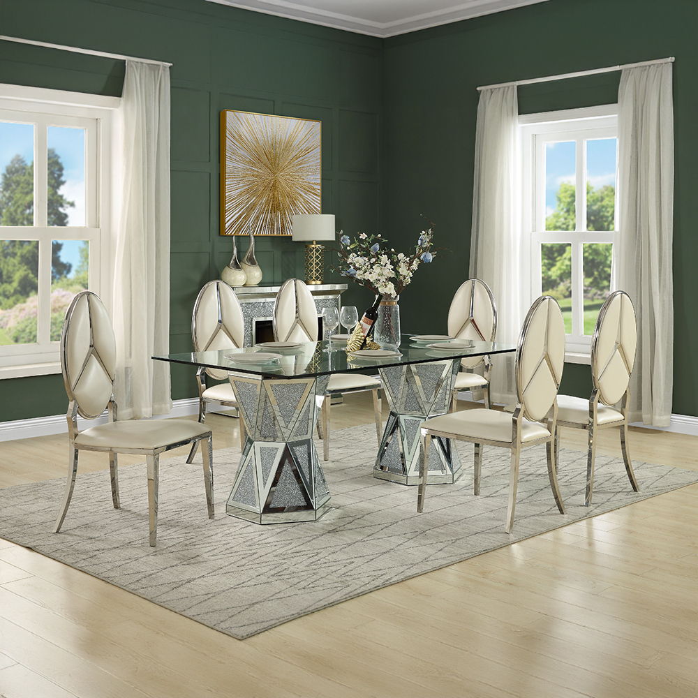 Noralie - 71" X 39" Dining Table - Mirrored & Faux Diamonds 71.0"W x 39.0"D x 30.0"H - 232.0 lb