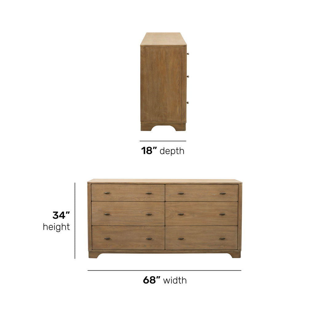 Simple geometry creates a look of timeless elegance for your bedroom with the Normandy dresser. Inspired by European architecture, this dresser offers a minimalist silhouette featuring an inviting, warm driftwood finish and gleaming gunmetal hardware. Standing on a dignified, strong frame, this piece is sure to be a conversation starter.