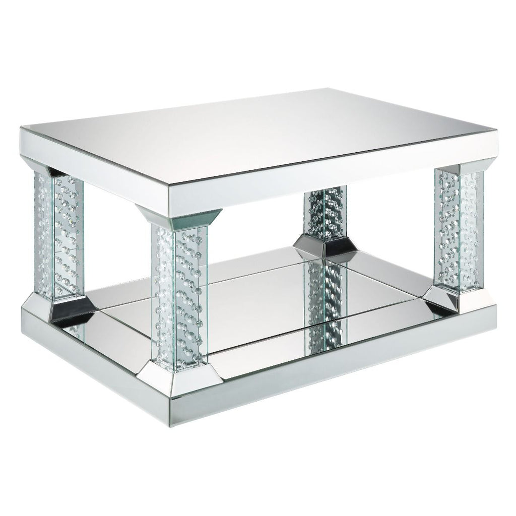 Nysa - 36" Coffee Table - Mirrored & Faux Crystals
