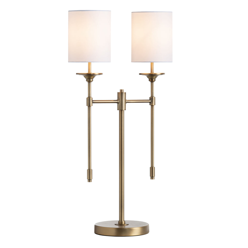 Part of Crestview Collection's Olympia Collection, the double arm accent lamp features the same shimmering gold finish and slender white linen shades. It is a beautiful combination of style and function; perfect for task lighting, a bedside table, or between two chairs.