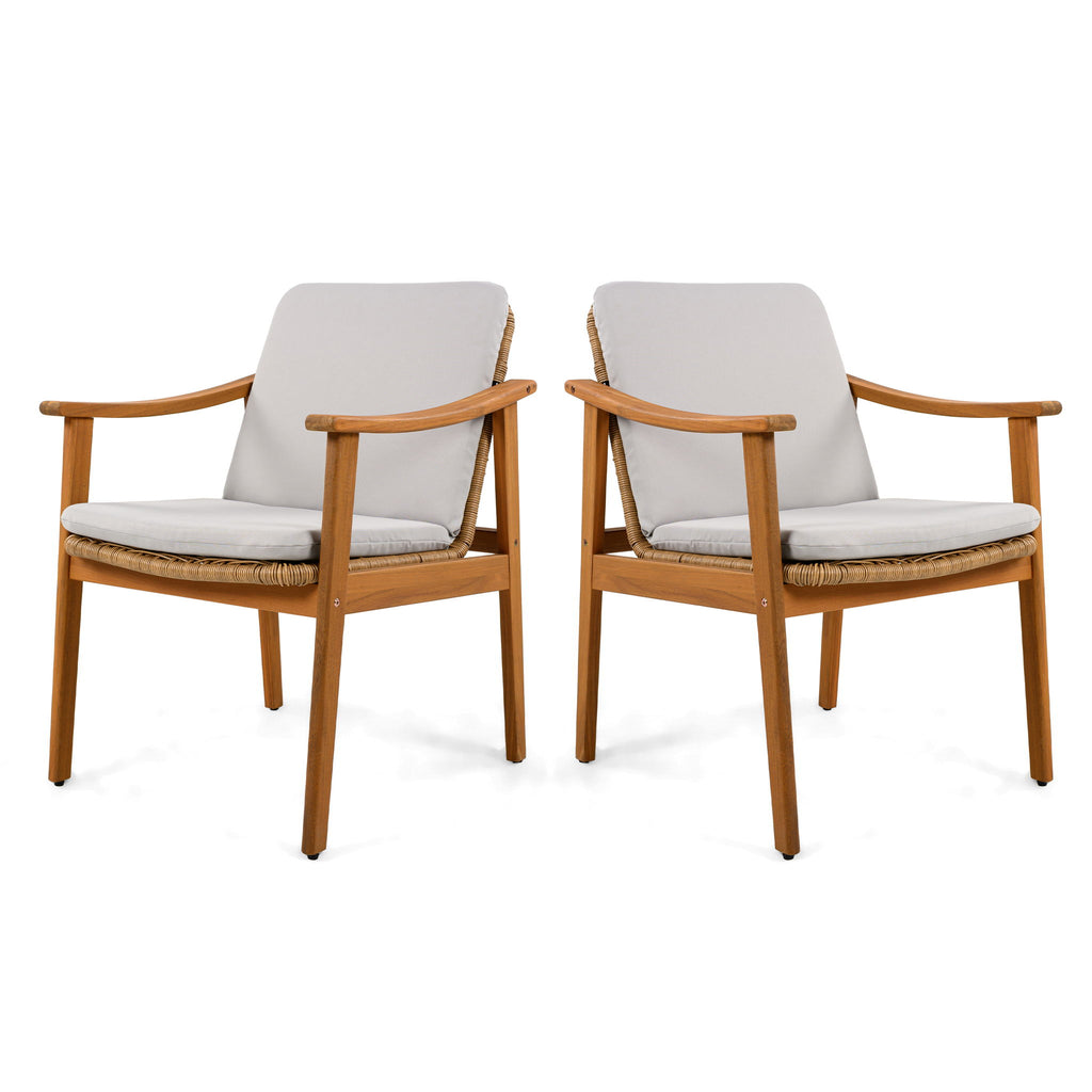 - Durable & Weather-Resistant Build: Crafted with a sturdy acacia wood frame and PE wicker seat, these chairs resist outdoor elements, ensuring long-lasting use.