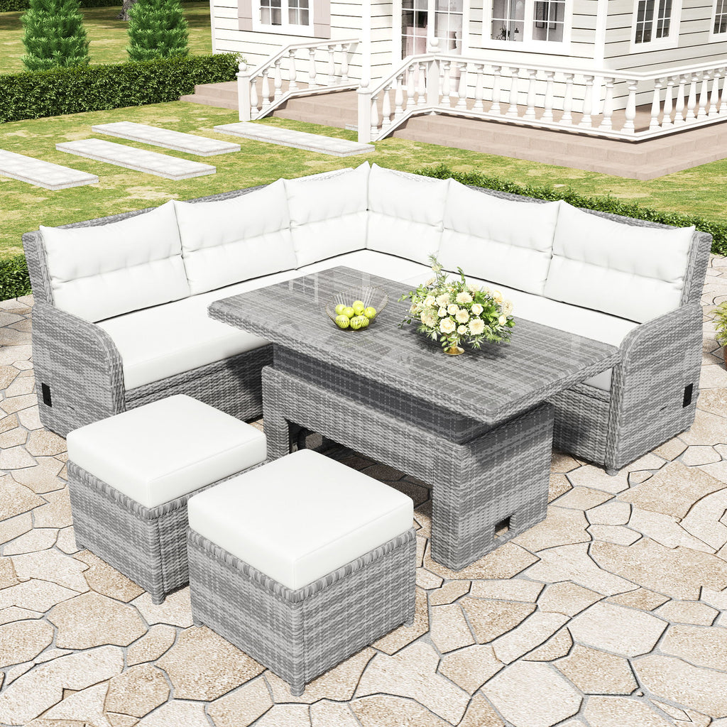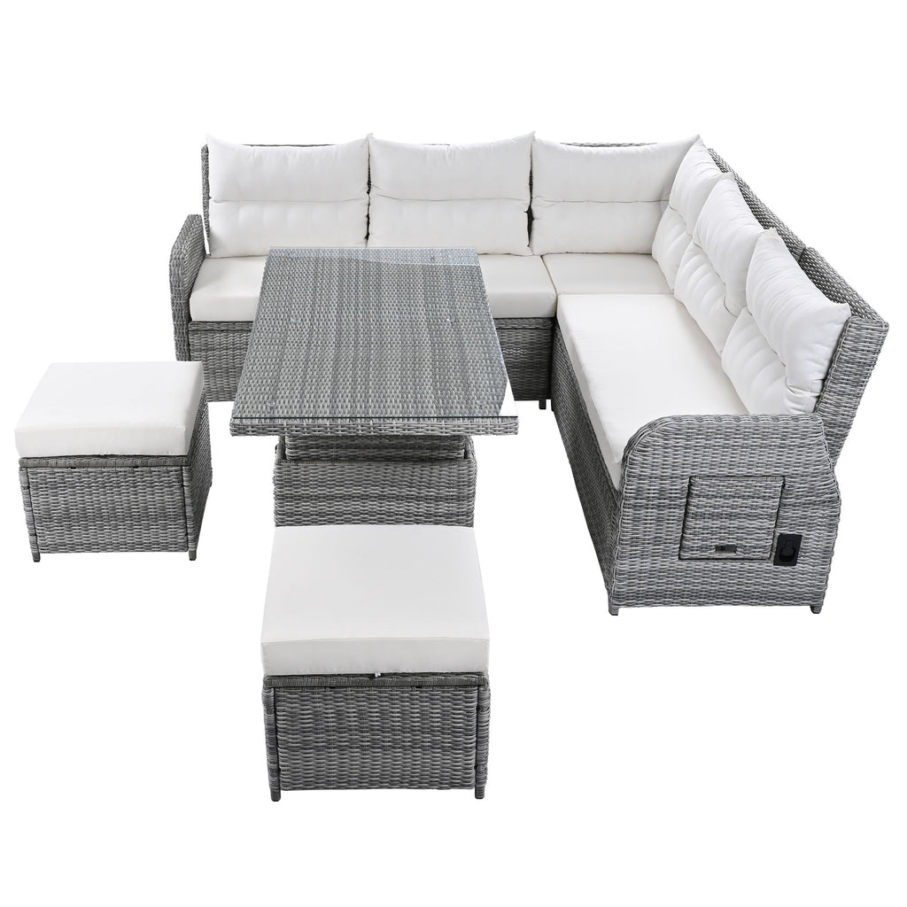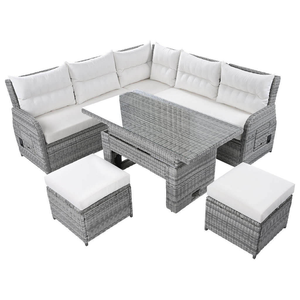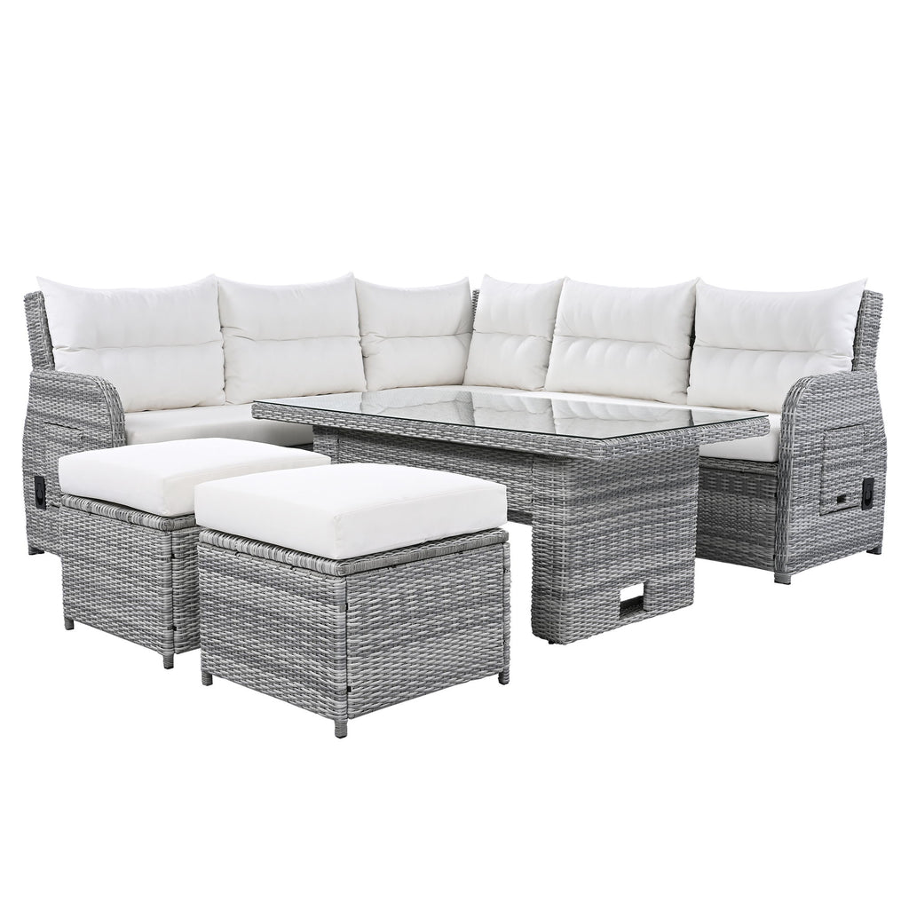 Outdoor Furniture Set Patio Rattan Furniture Set With An Adjustable Table, Recliners With Extendable Side Tables, And 2 Ottomans For Patio, Lawn, Backyard, Pool - Gray