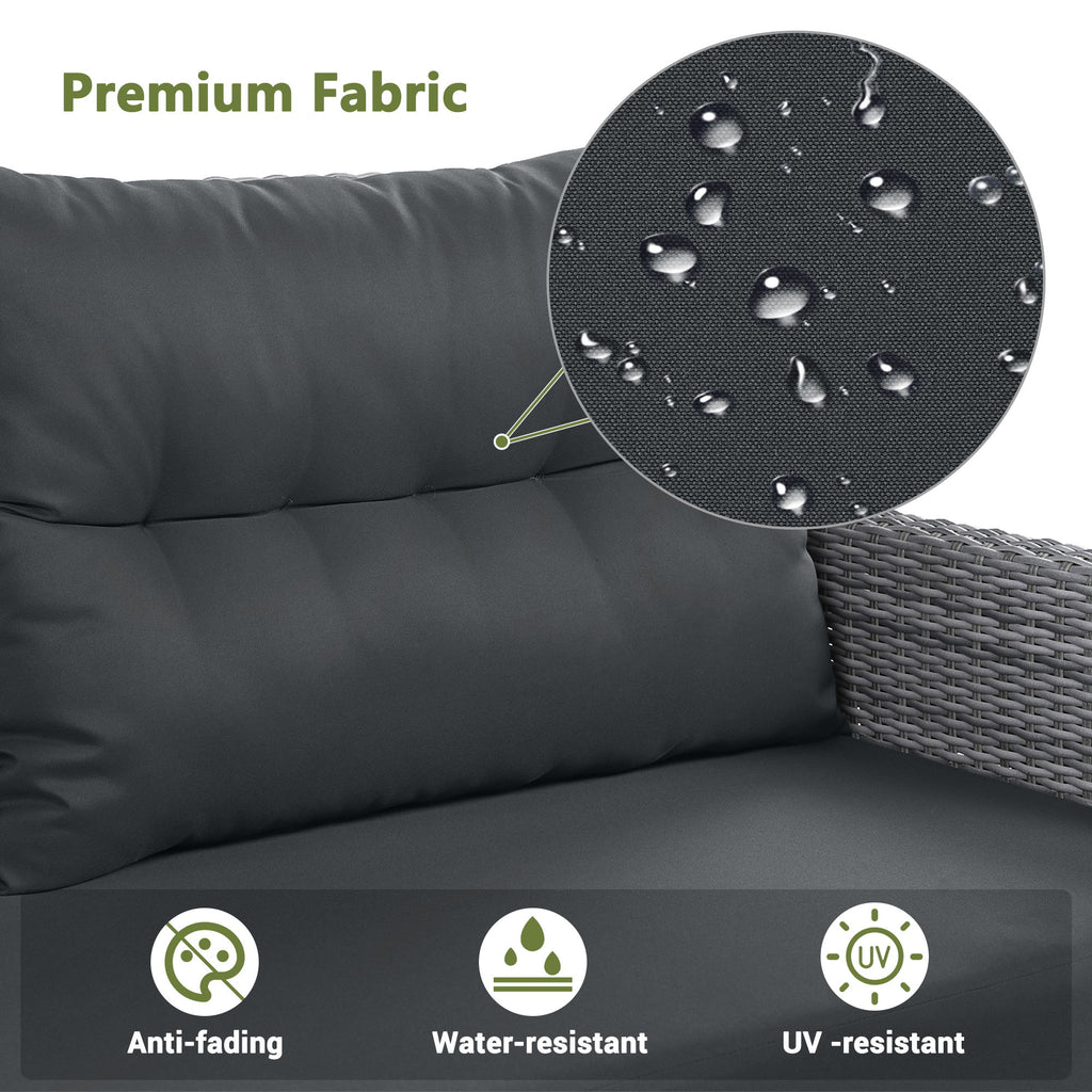 - Movable Ottoman - The set includes two movable ottomans, offering flexibility and versatility. They can serve as footrests, extra seating, or small tables for snacks, complementing the sofa set's modern design and enhancing outdoor space aesthetics.