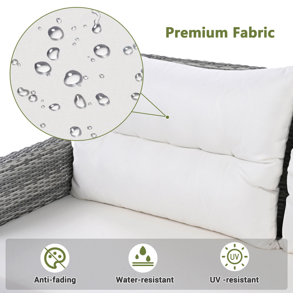 - Sturdy Construction - Boasting a rust-resistant iron frame and weather-resistant rattan, this set is designed for durability and can withstand various weather conditions. Its elegant woven appearance adds a stylish touch to outdoor areas, combining style, comfort, and functionality.