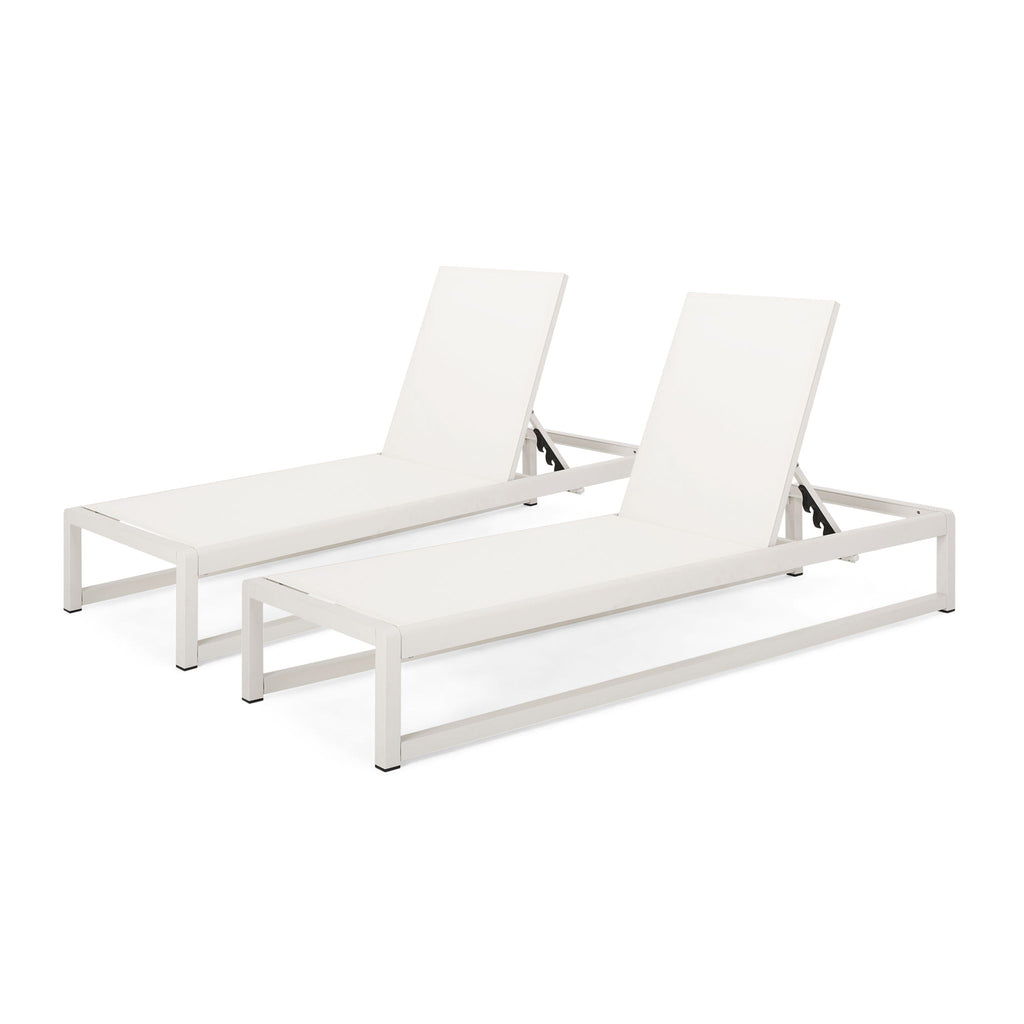 Modesta - Adjustable Aluminum Frame Chaise Lounge Set With Mesh Seating - White