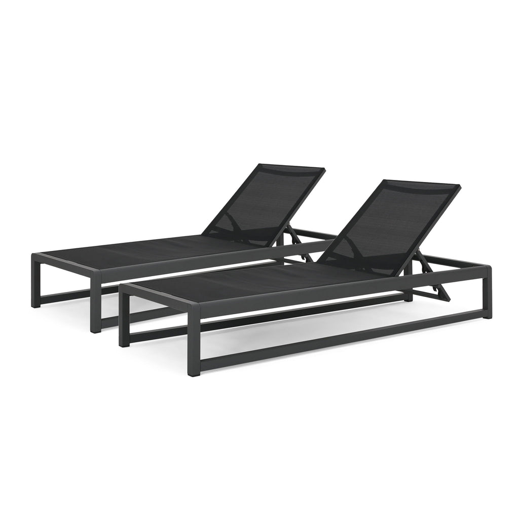 Outdoor Nylon Mesh Chaise Lounge, (Set of 2) - Black / Gray