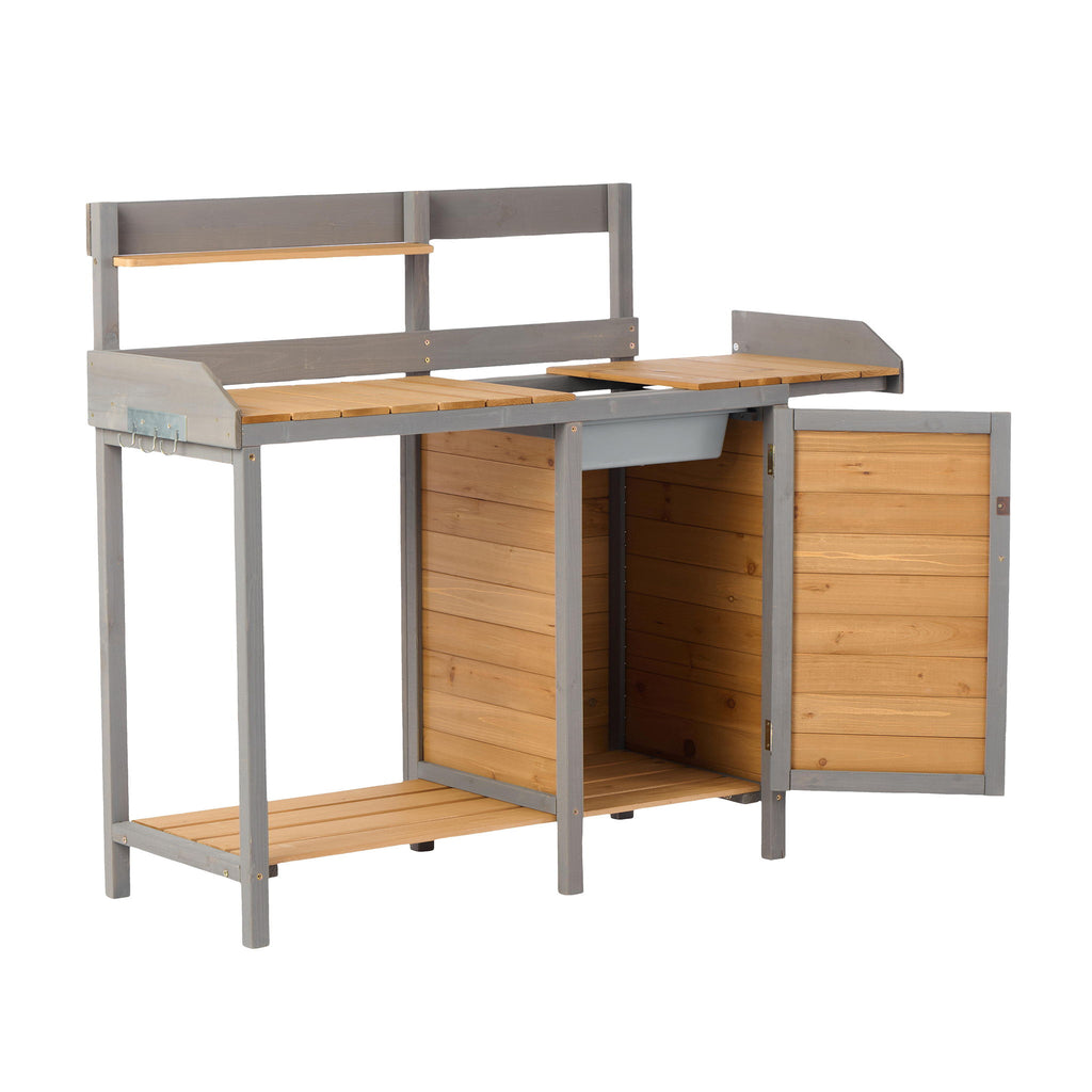Outdoor Potting - Bench, Workstation Table With Cabinet For Backyard Garden Supplies - Brown / Gray