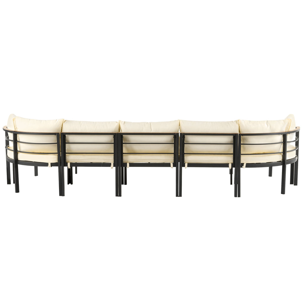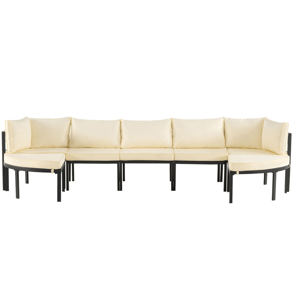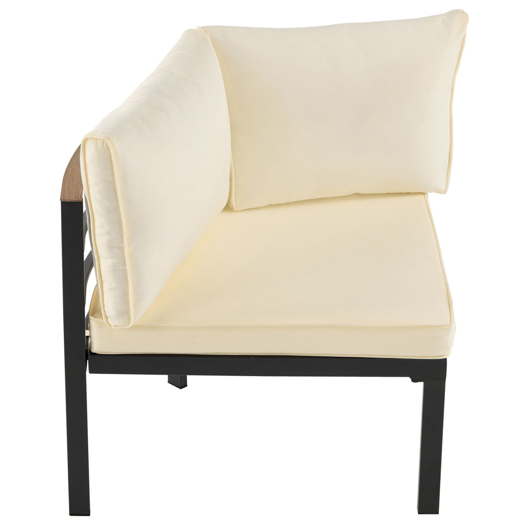 - Elegant Outdoor Aesthetic: Modern metal frame with neutral-tone cushions and natural wood-like tabletops.