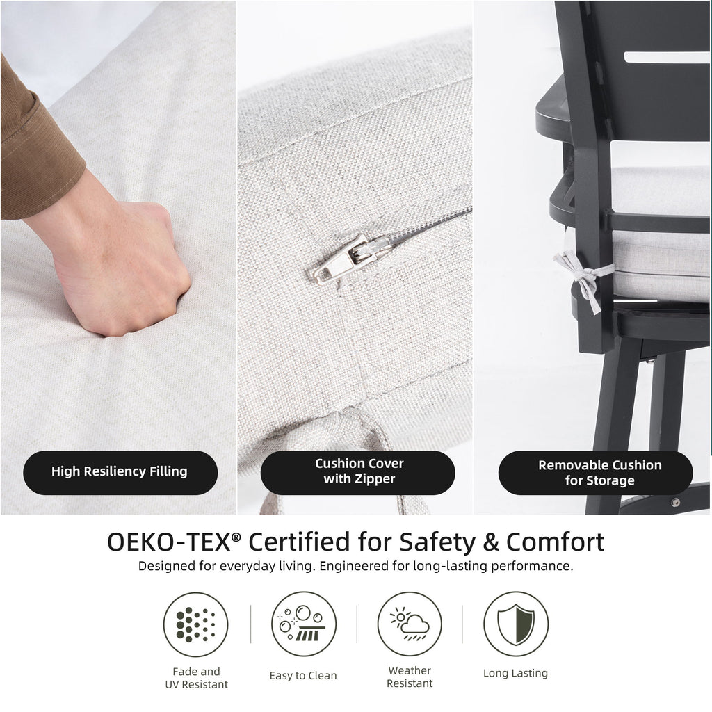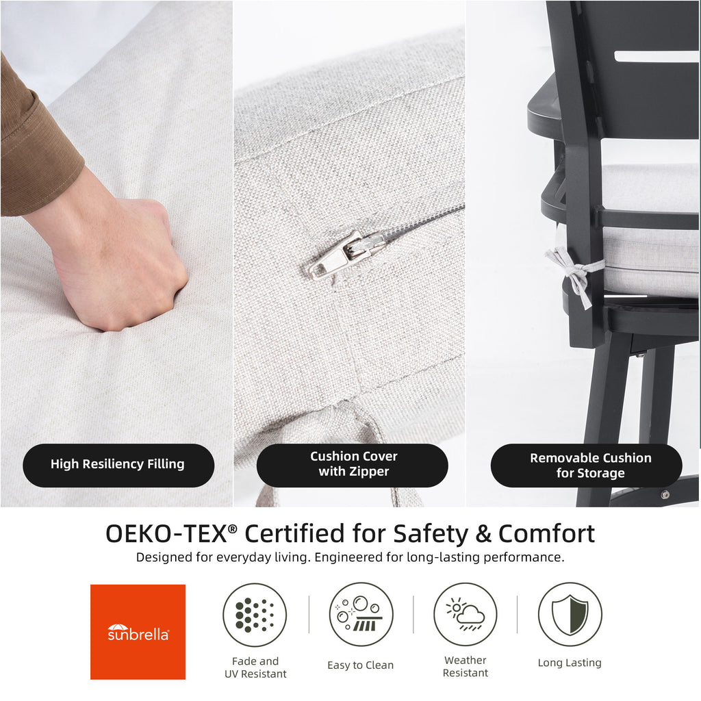 Outdoor Swivel Bar Chairs, 360 Degree Rotation With Ergonomic Backrest (Set of 2) - Ember Black / Linen Sesame