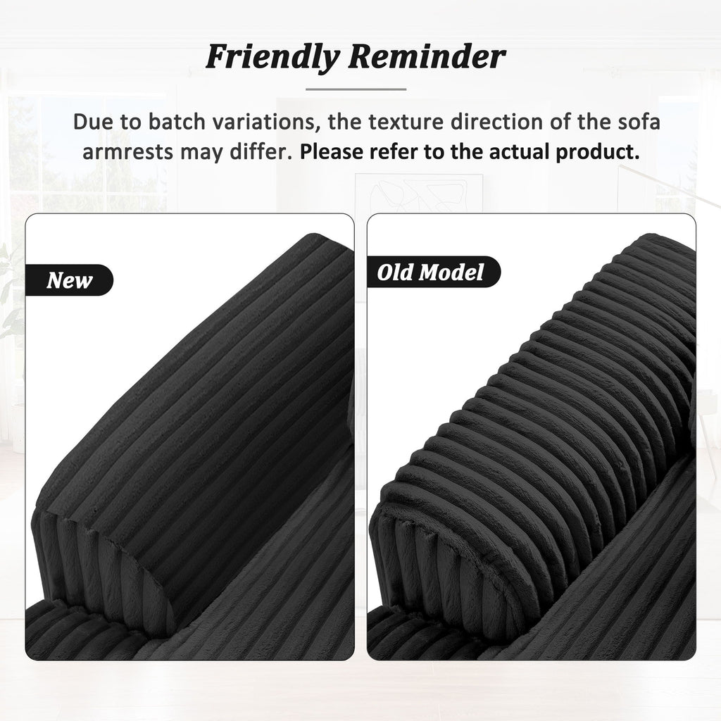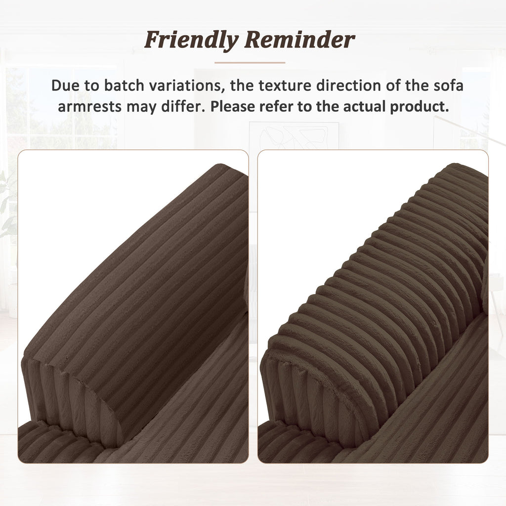 - Luxurious Fabric - Upholstered in ultra-soft corduroy fabric, the sofa provides a plush and inviting feel. This durable material maintains its elegant appearance and adds visual interest, complementing various decor styles.