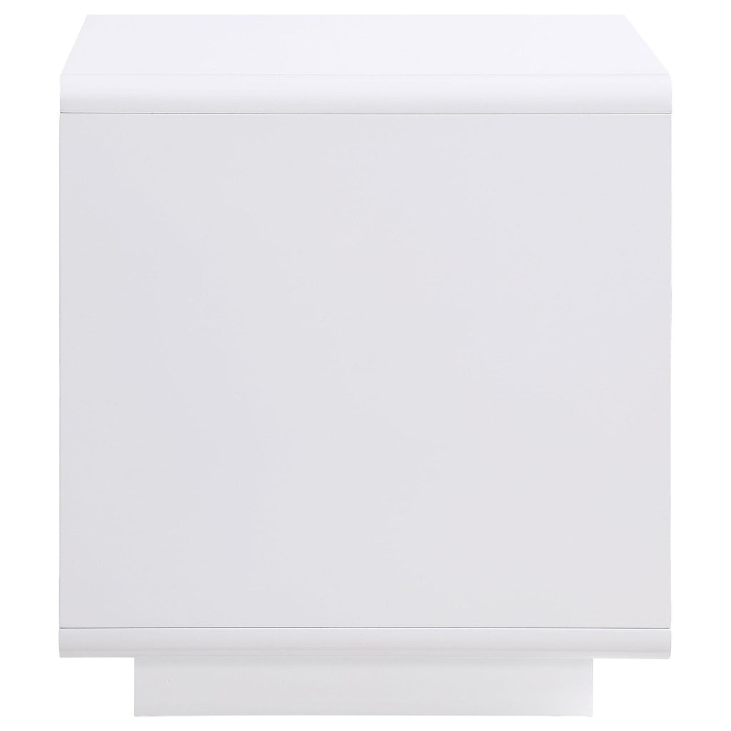 This matching end table continues the refined aesthetic with a white high gloss finish over engineered wood. Its compact form works perfectly as a side table or occasional table, while the open shelf adds convenient utility. As an accent table or utility table, it seamlessly aligns with the coffee table’s sleek presence, enhancing a cohesive, modern living room setting.