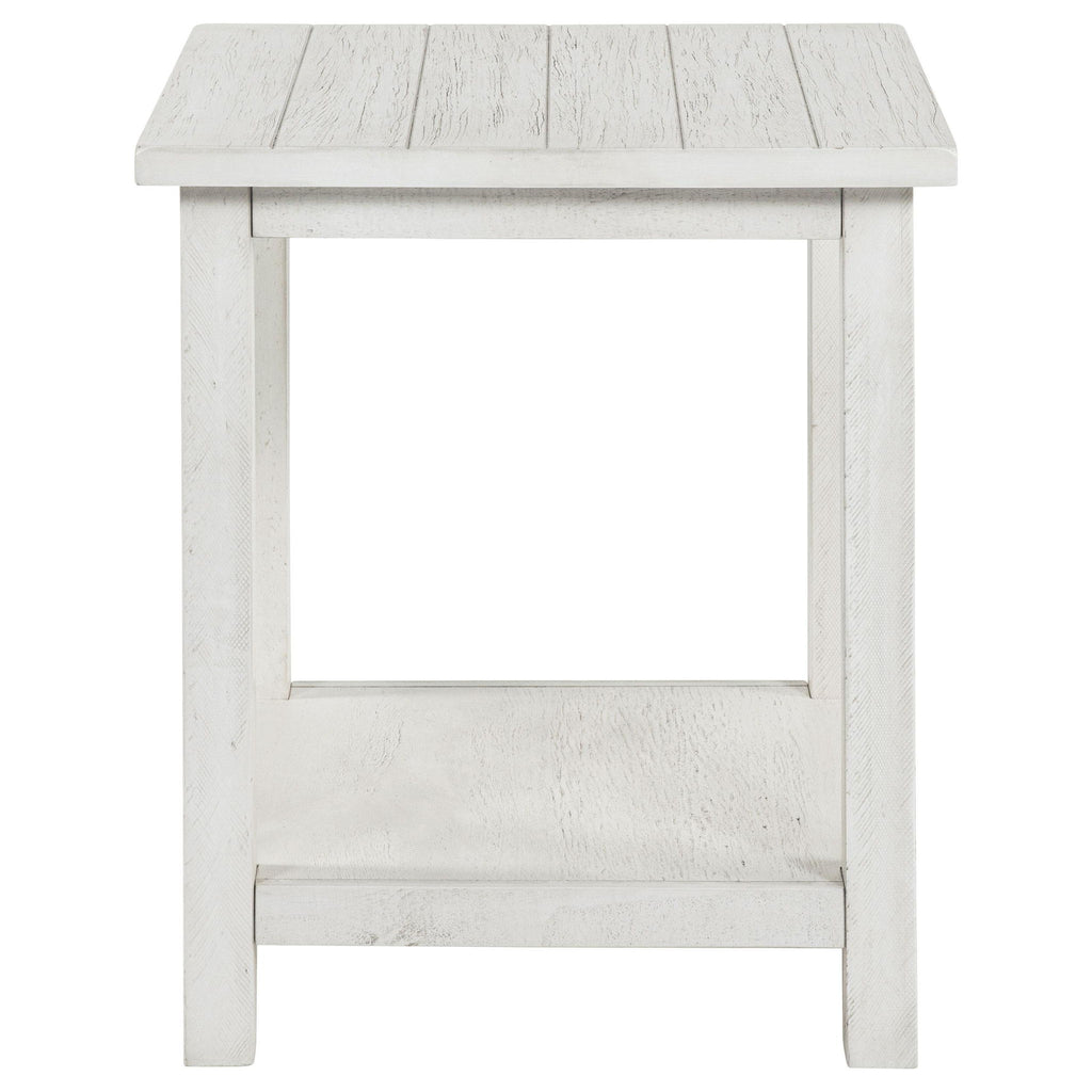 Blending rustic warmth with functional design, this end table enhances your living room with cozy style. Built from pine wood and reinforced with engineered wood, it features a square silhouette suited for farmhouse or casual interiors. Its open lower shelf offers the perfect spot for décor or storage. Place it as a side table to keep must-haves within reach and bring a relaxed charm to any seating area