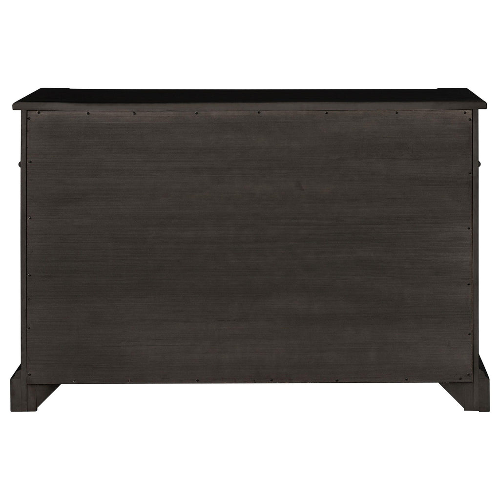Refined elegance meets everyday versatility in this beautifully crafted sideboard, designed to elevate any dining space. With its antique noir finish, this piece exudes a sense of timeless sophistication, effortlessly complementing both formal and casual settings. Built from poplar, engineered wood, and acacia veneer, it offers a perfect blend of durability and charm. Three drawers and two cabinet doors provide ample hidden storage, while six adjustable shelves allow for customizable organization. The open center cubbies create an inviting space to showcase decorative serveware, making this sideboard as functional as it is stunning.