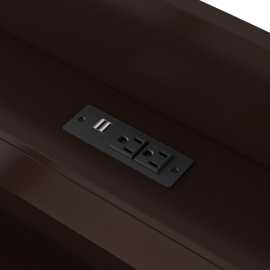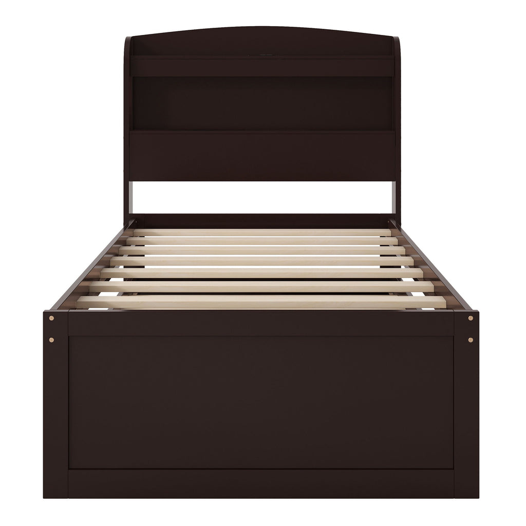 Twin Long Platform Bed With LED Headboard, Charging Station, Twin Trundle And 2 Drawers - Dark Brown