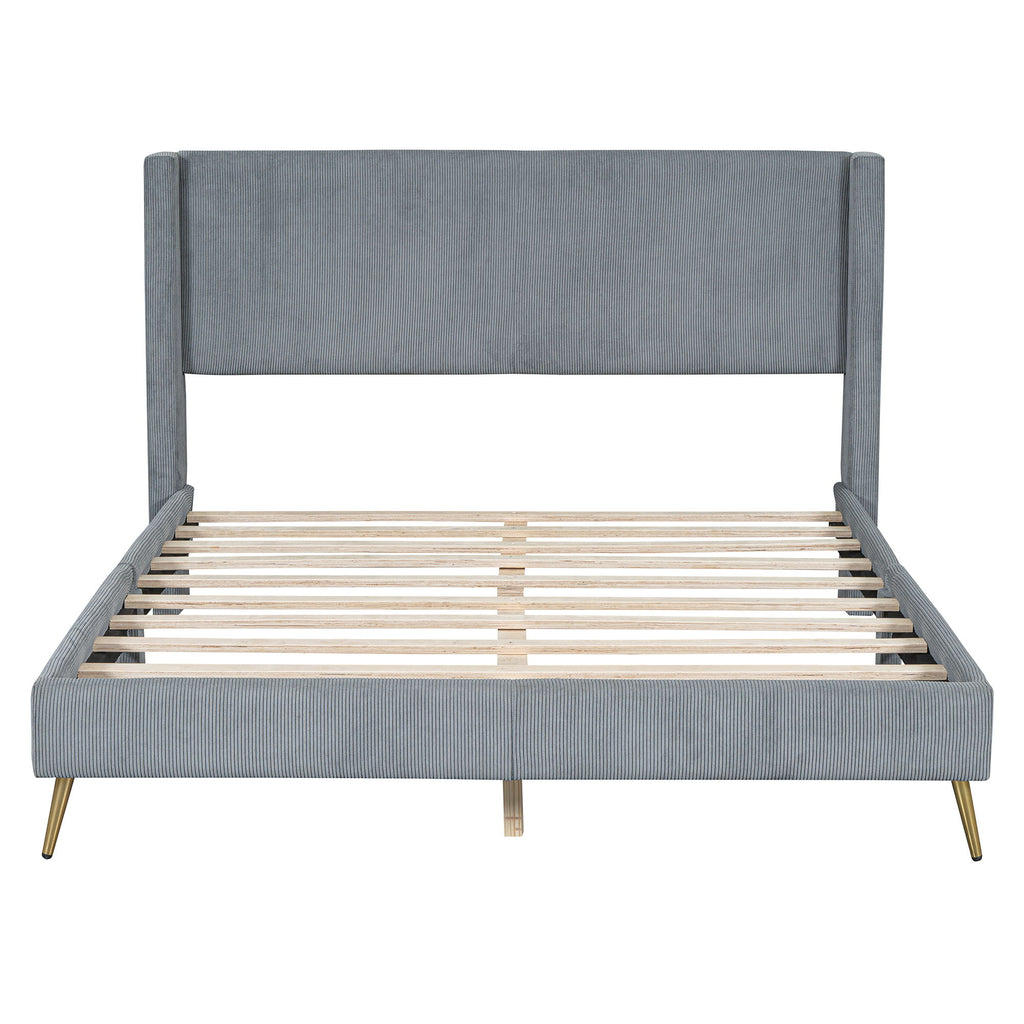 Queen Size Platform Contemporary Bed With Legs - Gray
