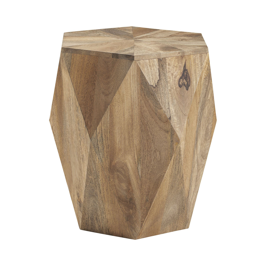 The Crestview Collection Pleasant Hill Hexagon End Table has a solid wood construction that will provide a sturdy piece in your home. The light-brown finish allows this rustic end table to blend with any color scheme in your home. Its hexagonal top will provide a unique look next to your seating area.