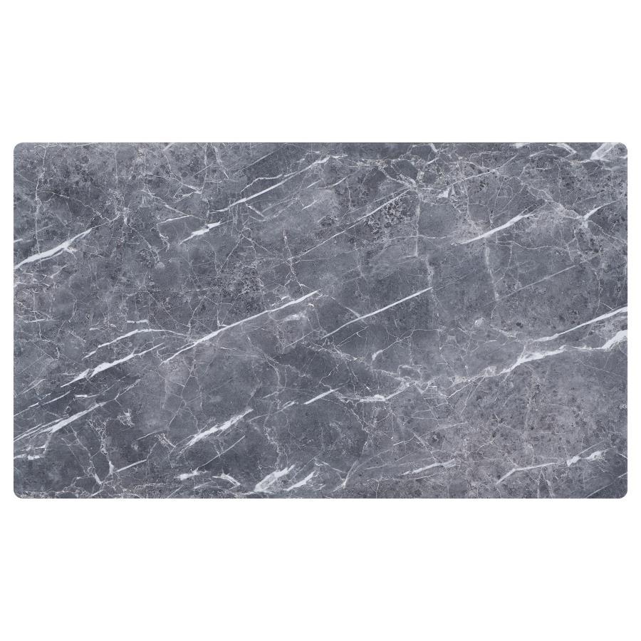 This coffee table set, inspired by mid-century modern design, includes both a rectangular coffee table and square end table. Each piece features a high-pressure laminate top in a faux marble finish, offering the luxurious appearance of marble without the heavy weight. The natural brown base complements the cool grey hues of the faux marble, creating a sophisticated contrast that embodies clean, functional beauty. Both tables are perfect for enhancing your living space with style and practical utility.