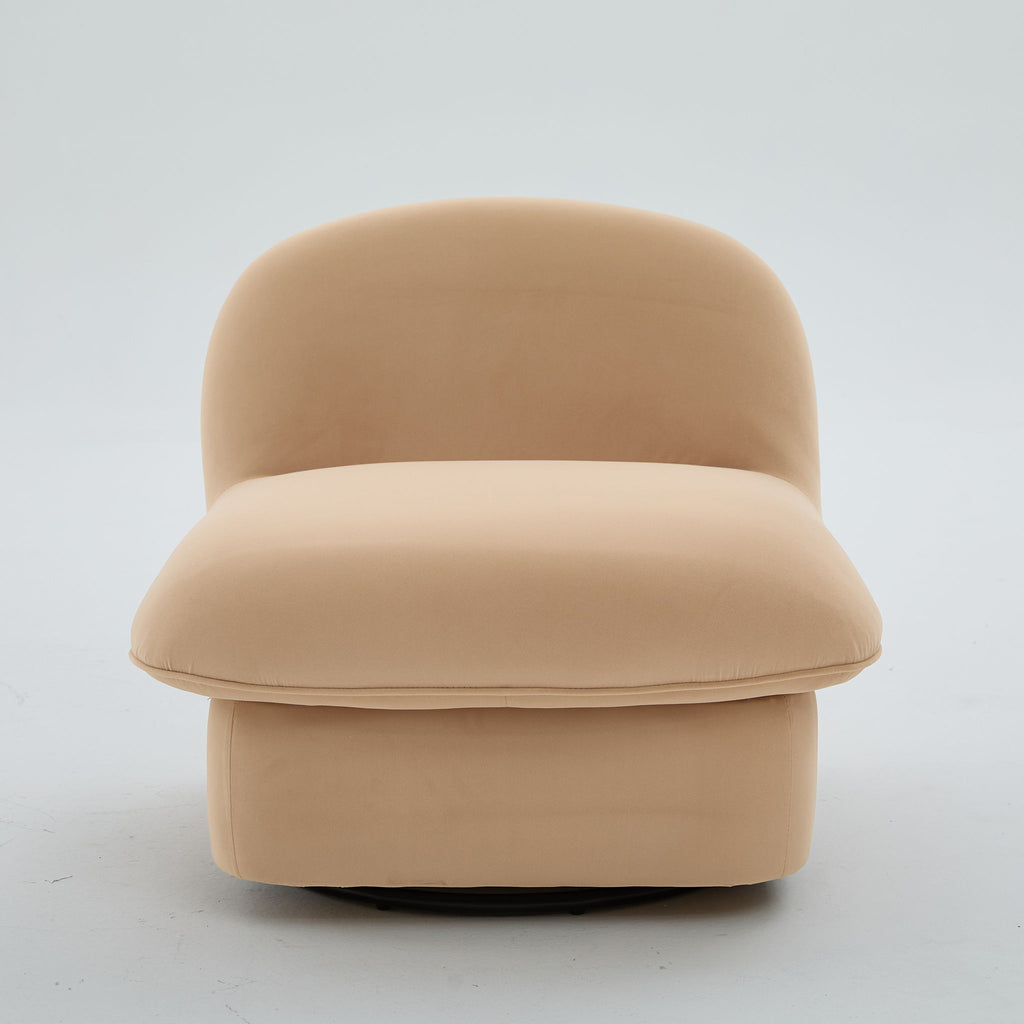 Pumpkin Shaped Swivel Accent Chair, 360 Degree Rotation For Living Room - Khaki
