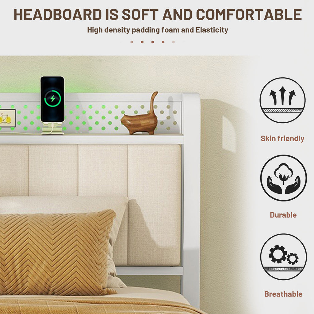 • Storage and DIY Headboard--A shelf on headboard can be placed easily decorations,clock, phones or some odds, providing you more storage space, it is very convenient and practical. Unique DIY metal headboards design can absorb magnet products,full of creativity and you can decorate the headboard however you like.