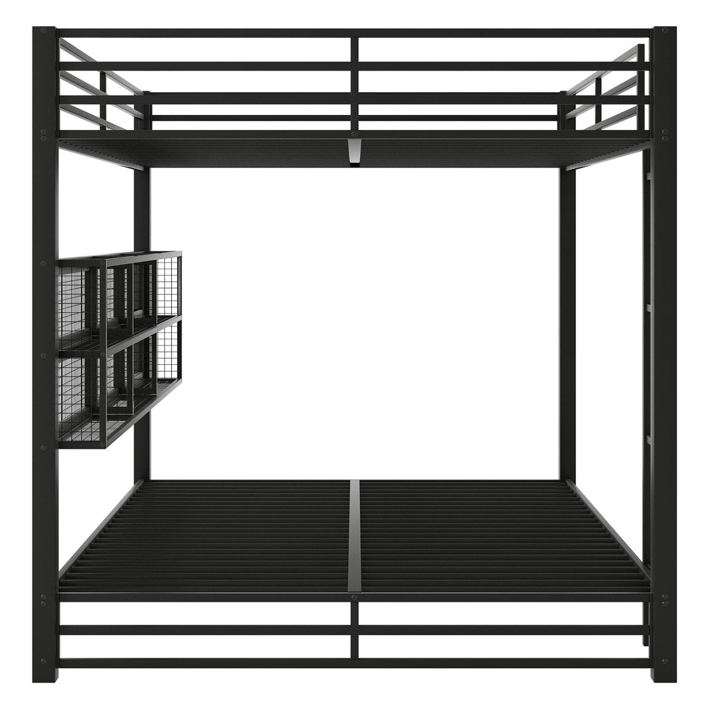Queen Over Queen Bunk Bed With Storage Cabinets And LED Sturdy Frame, 6 Storage Units, Adjustable LED Lights - Black