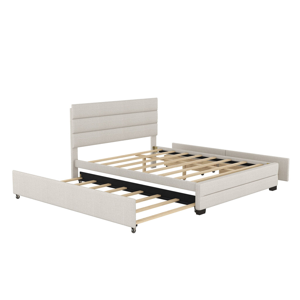 Queen Platform Bed With Twin Trundle And 2 Storage Drawers - Beige