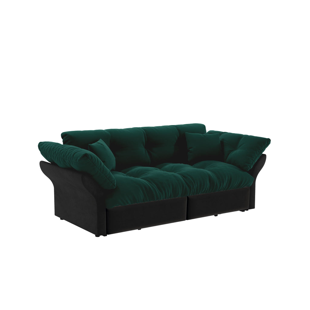 Queen Pull Out Sofa Bed, 3 In 1 Convertible Sleeper Sofa With 2 Soft Pillows - Green