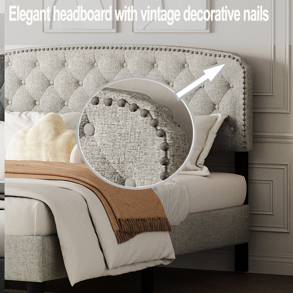 - LUXURY UPHOLSTERY Upholstered in a superior-grade polyester linen fabric, this headboard is soft to the touch and generously padded with our own unique foam for long-term durability.