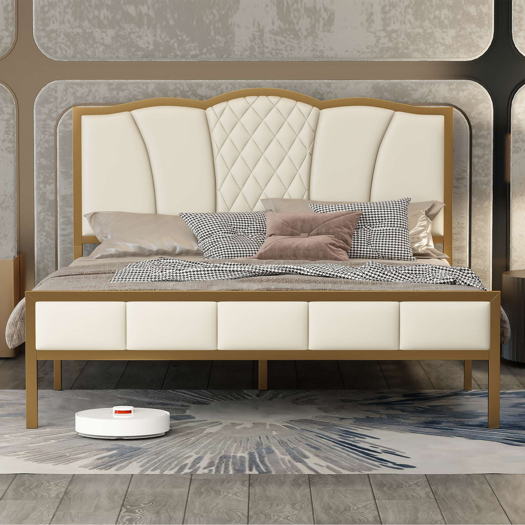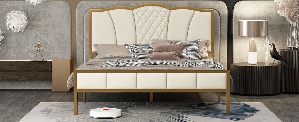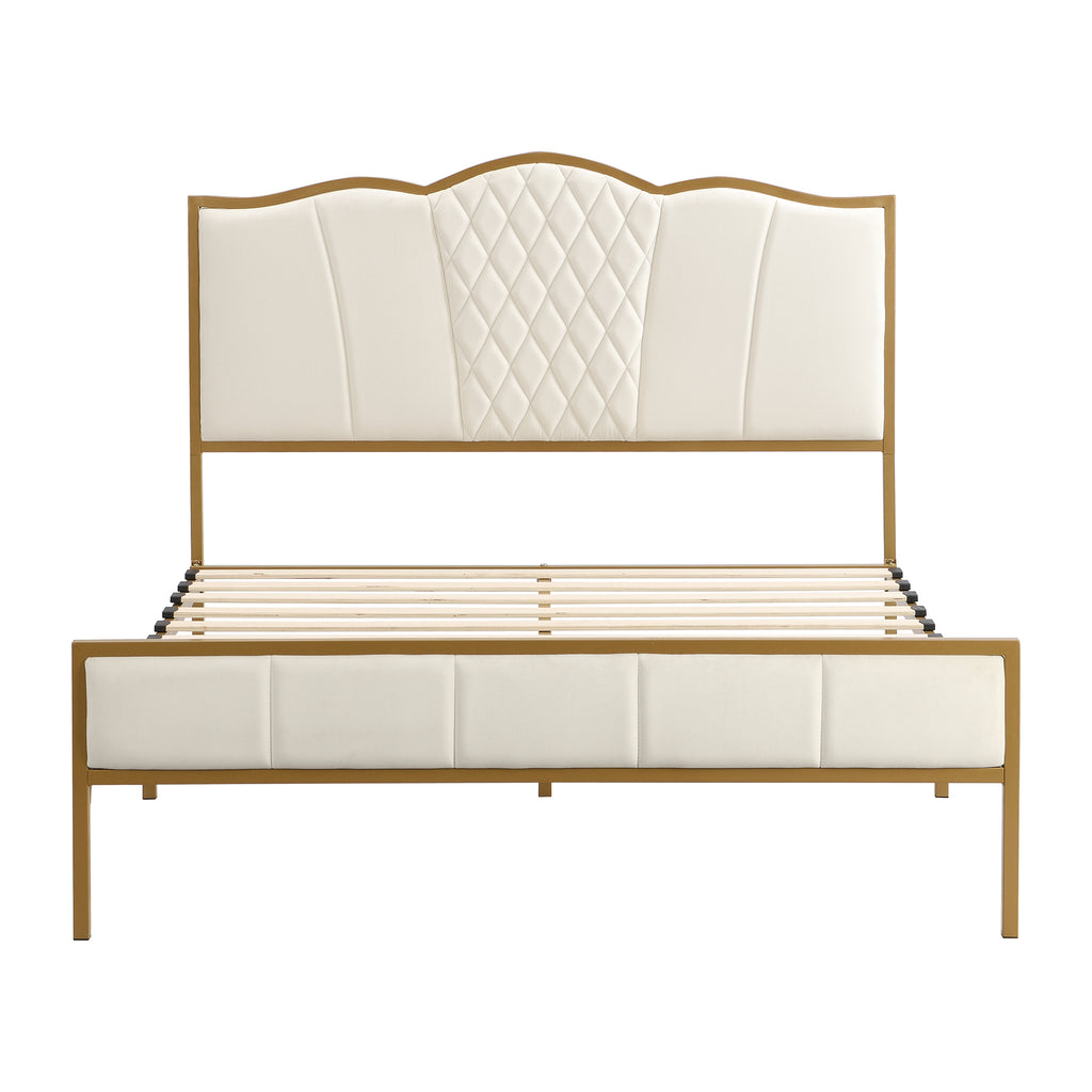 Modern Upholstered Bed Frame with Tufted Headboard, Metal Platform Bed Frame with Wood Slat Support