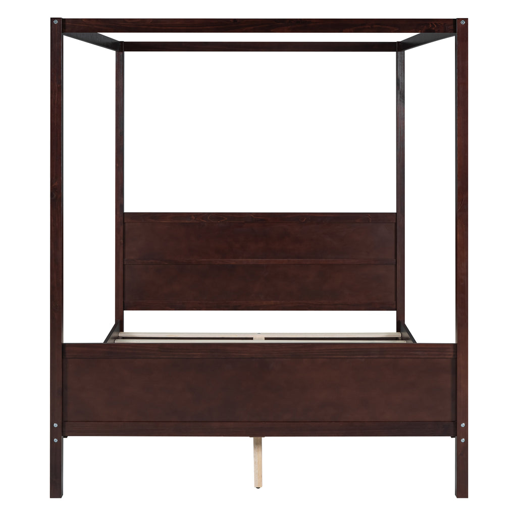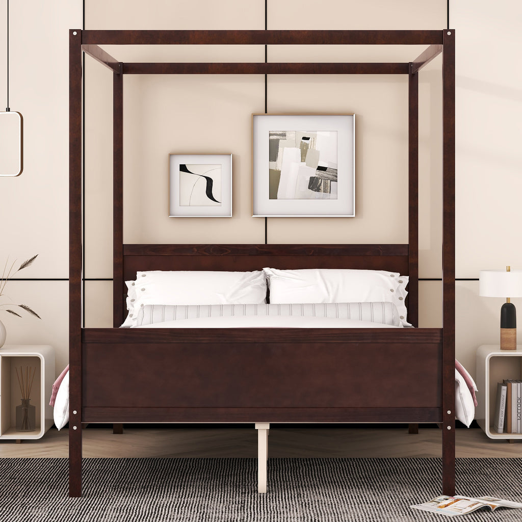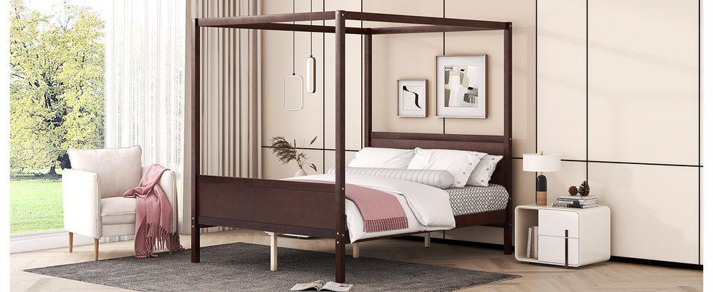 - [Modern Design] Wooden canopy bed with beautiful finish has a sleek exterior profile, built-in headboard and footboard, with clean lines for a timeless look.