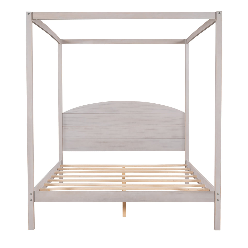 Queen Size Canopy Platform Bed with Headboard and Support Legs,Grey Wash
