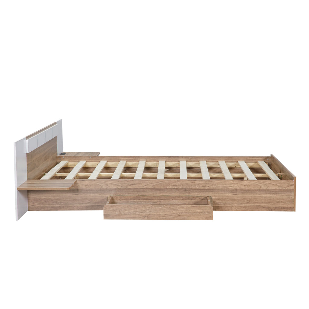Queen Size Platform Bed with Headboard, Drawers, Shelves, USB Ports and Sockets, Natural