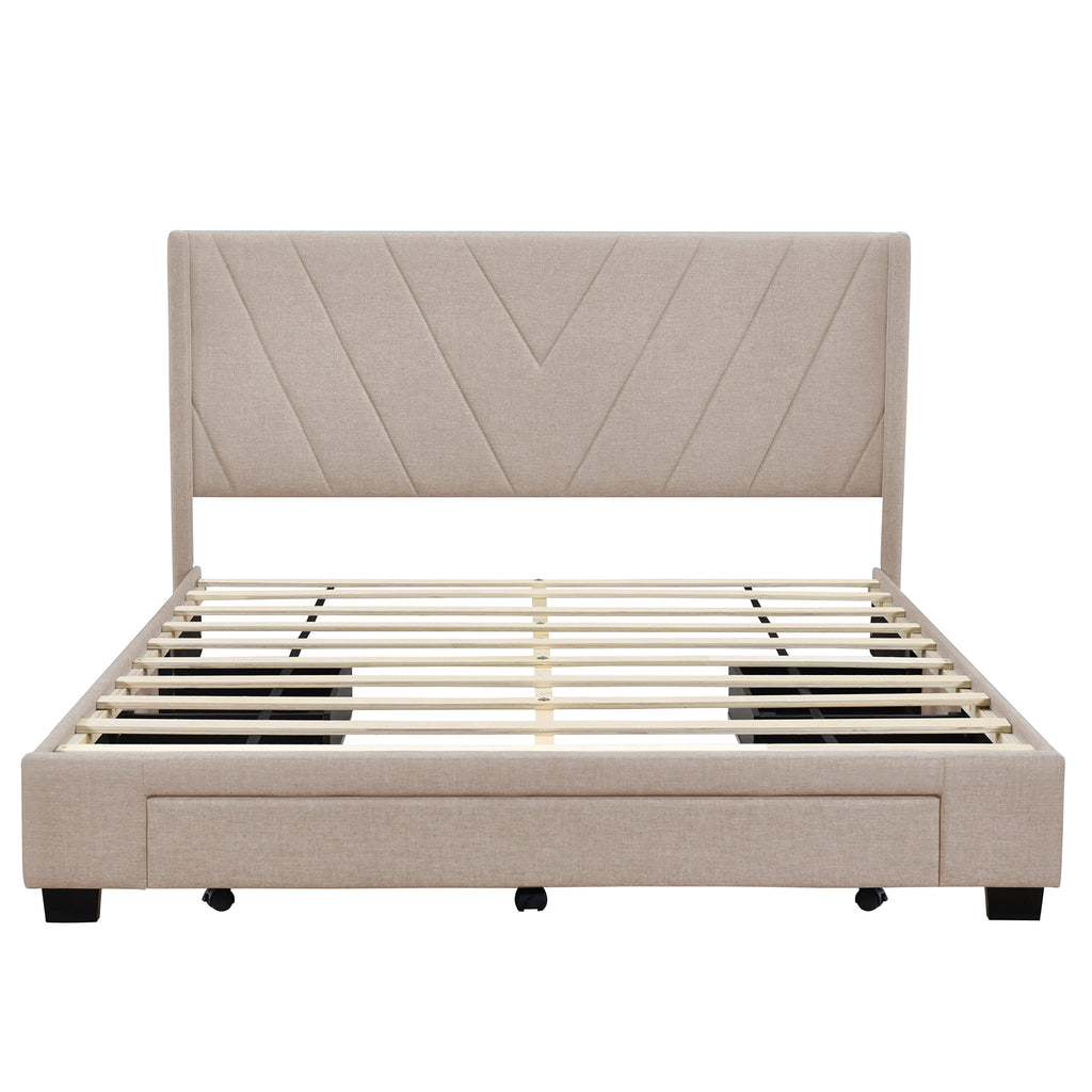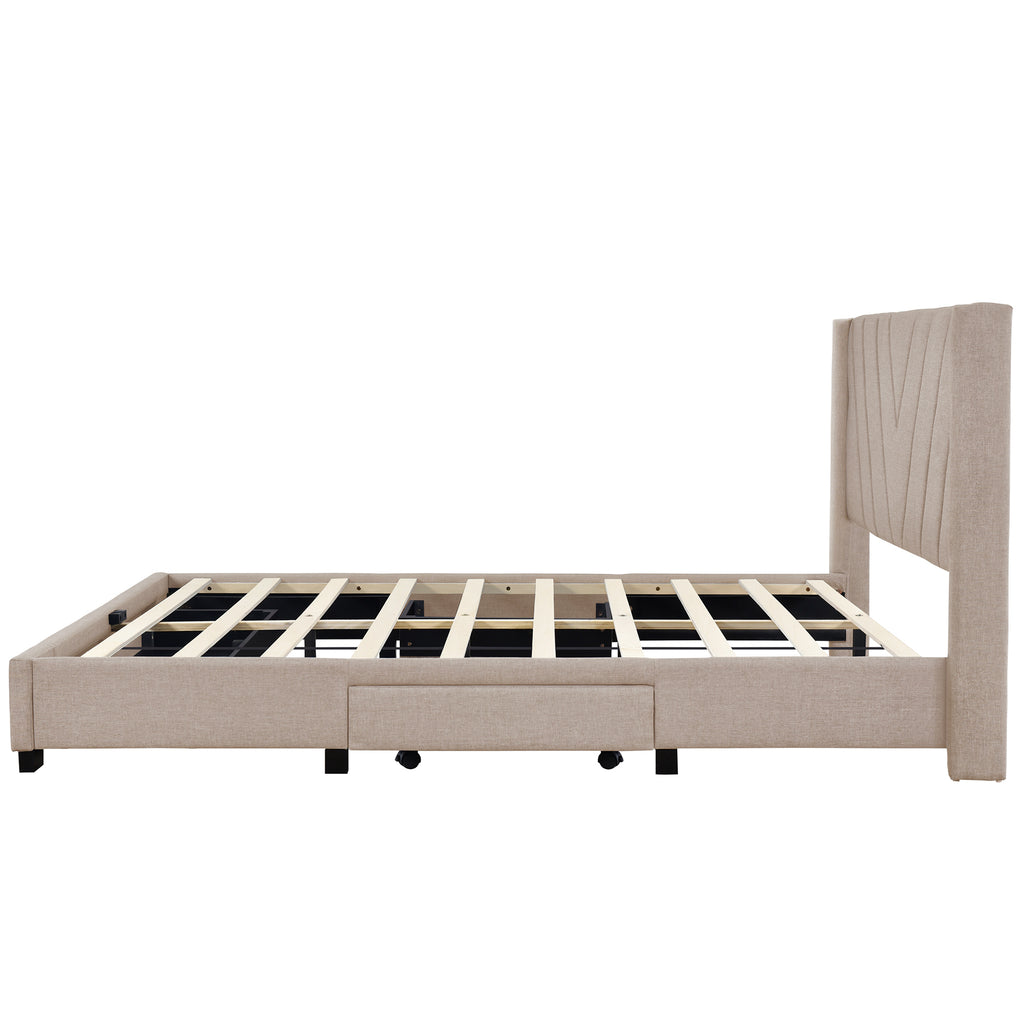 - [Elegant Design] Upholstered in carefully-selected linen fabric and with docorative details, this platform bed not only suits any home décor, but is timeless in its design. The single color of the design creates versatility. Headboard is included as a comfy linen fabric backrest that brings you and your partner a cozy feeling.