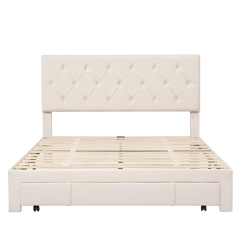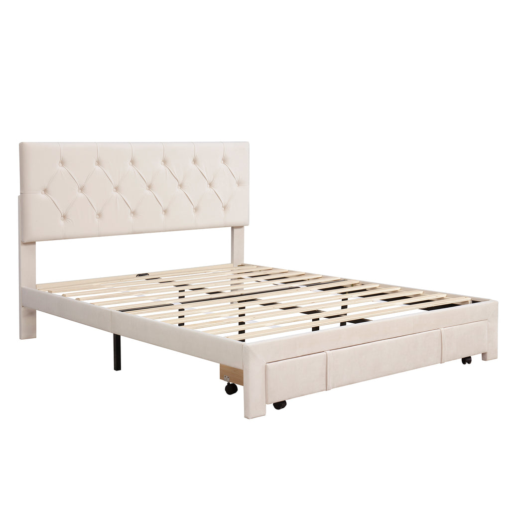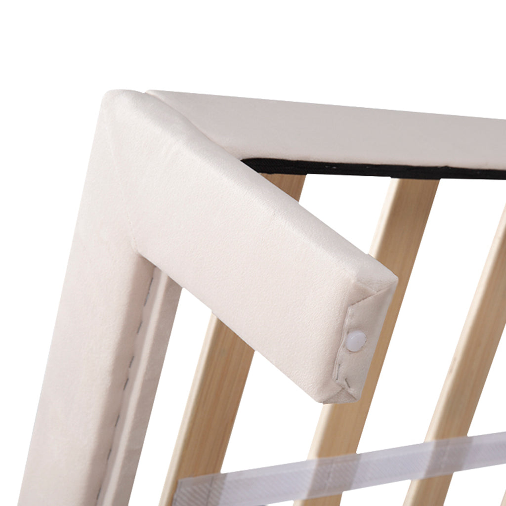 - [Elegant Design] Upholstered in carefully-selected velvet fabric, in elegant beige, and with docorative details, this platform bed not only suits any home décor, but is timeless in its design. The soft textile bedhead creates coziness, while the single color of the design creates versatility.