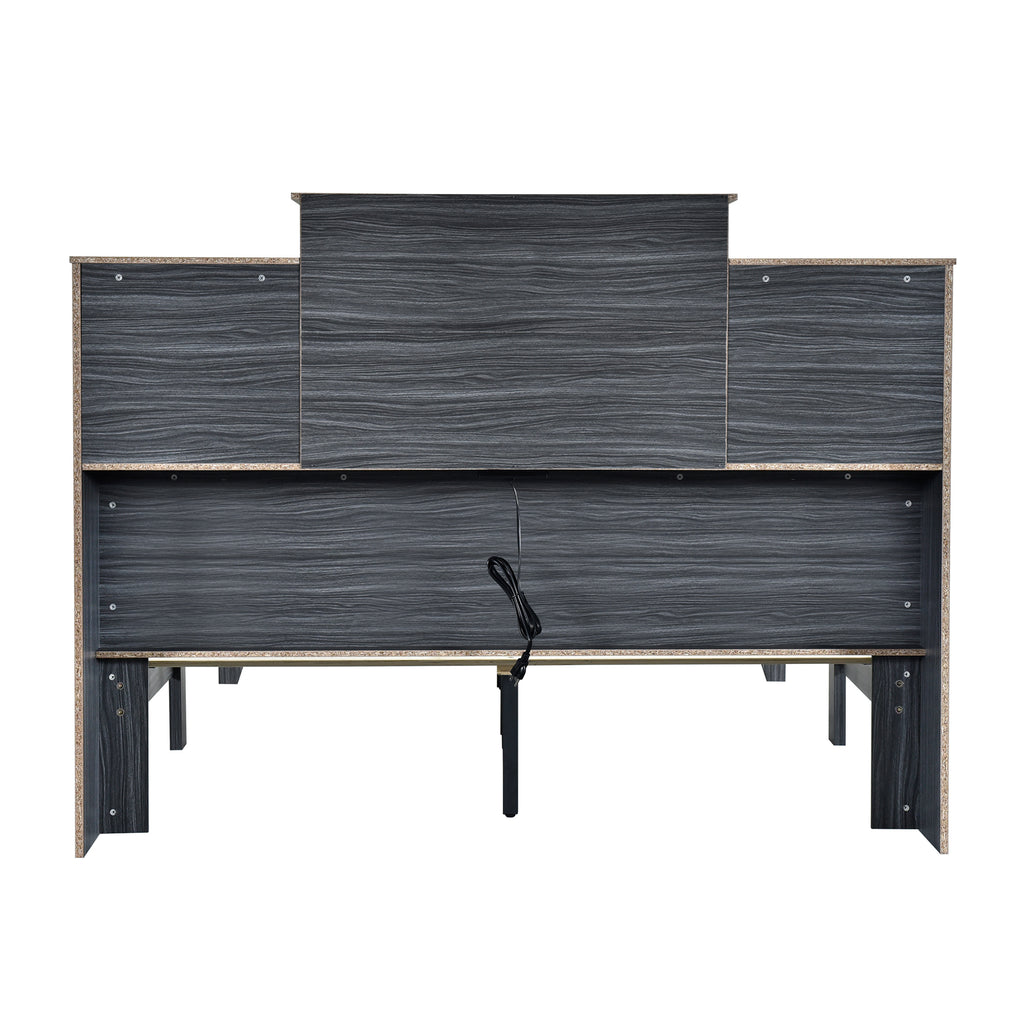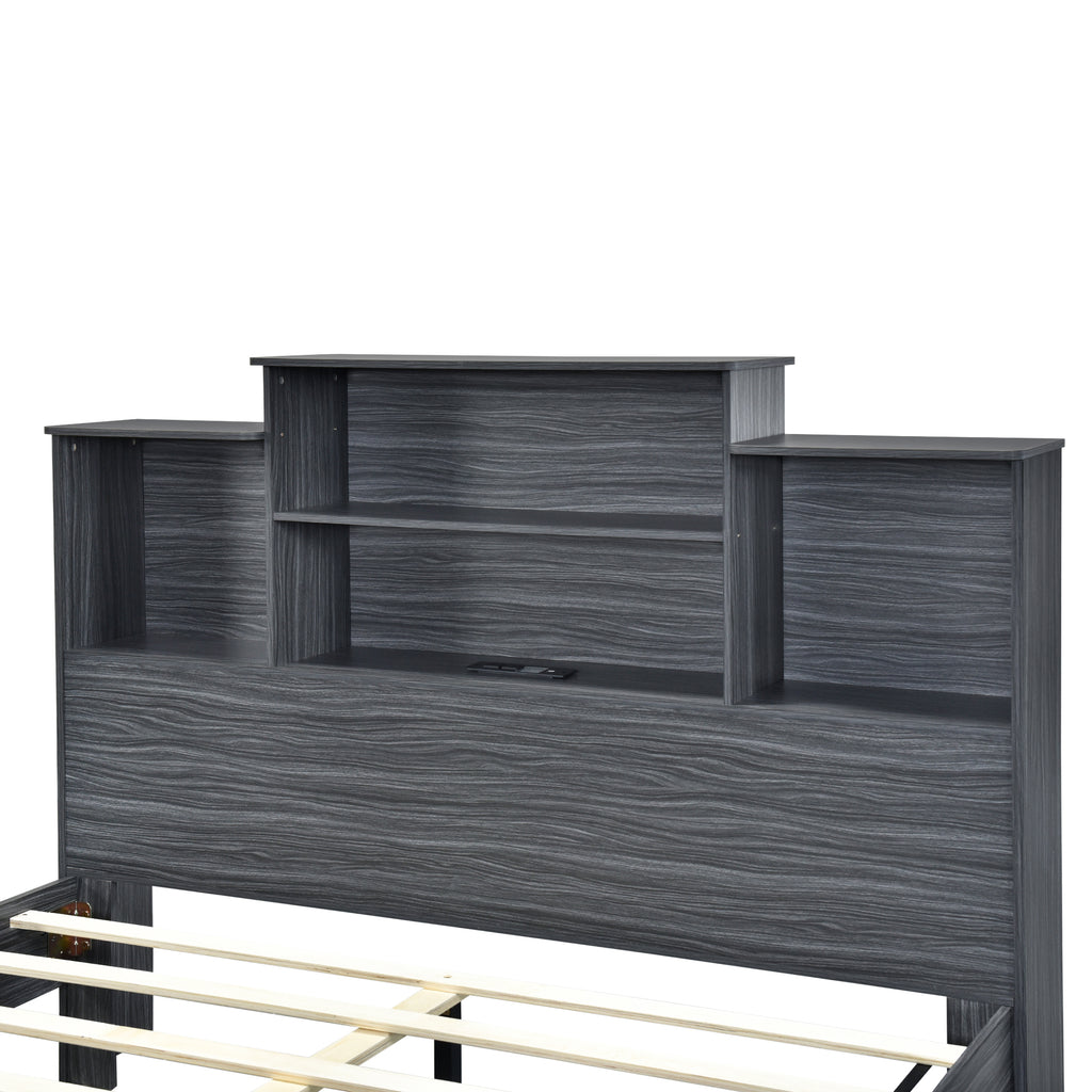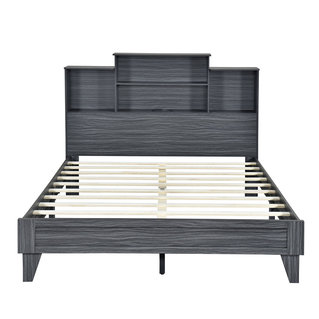 Queen Size Storage Platform Bed Frame with 4 Open Storage Shelves and USB Charging Design,Gray