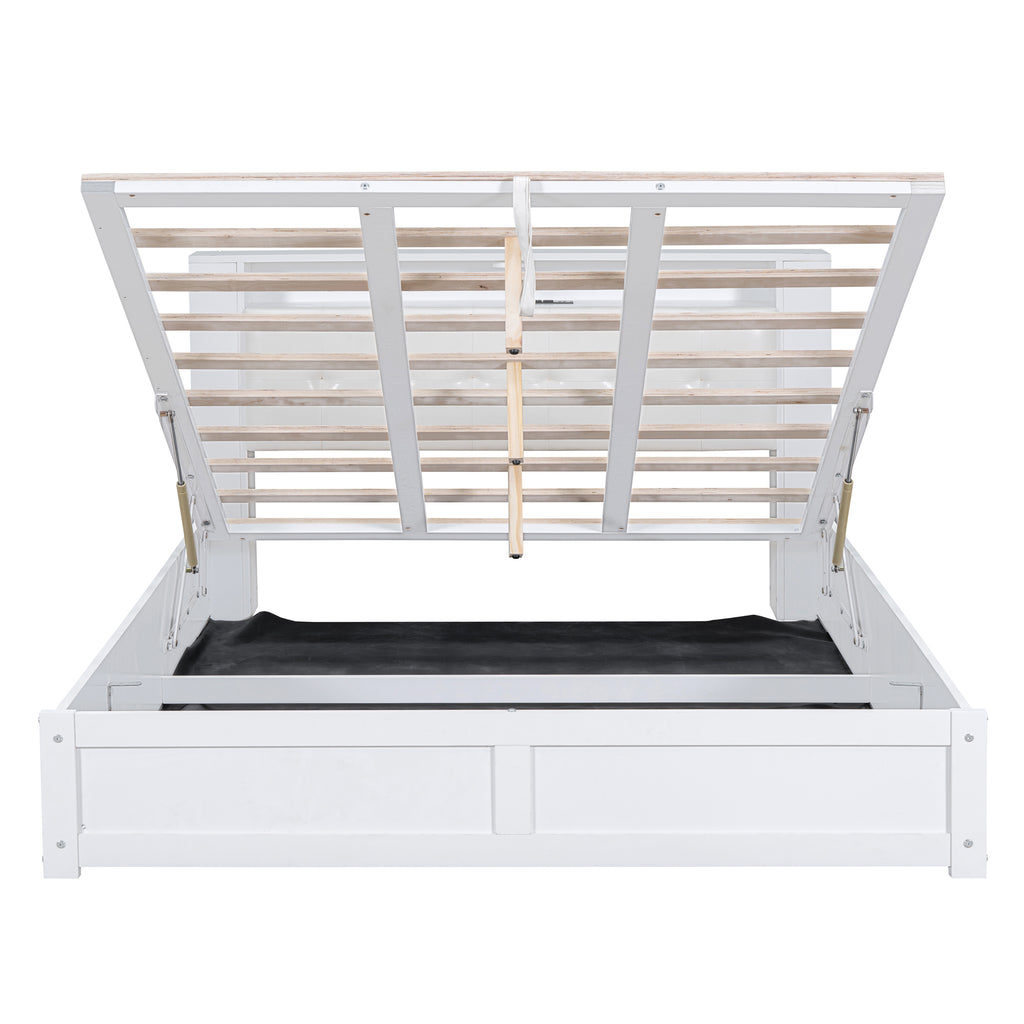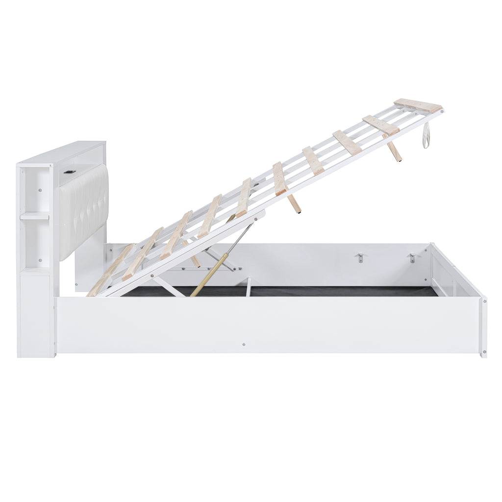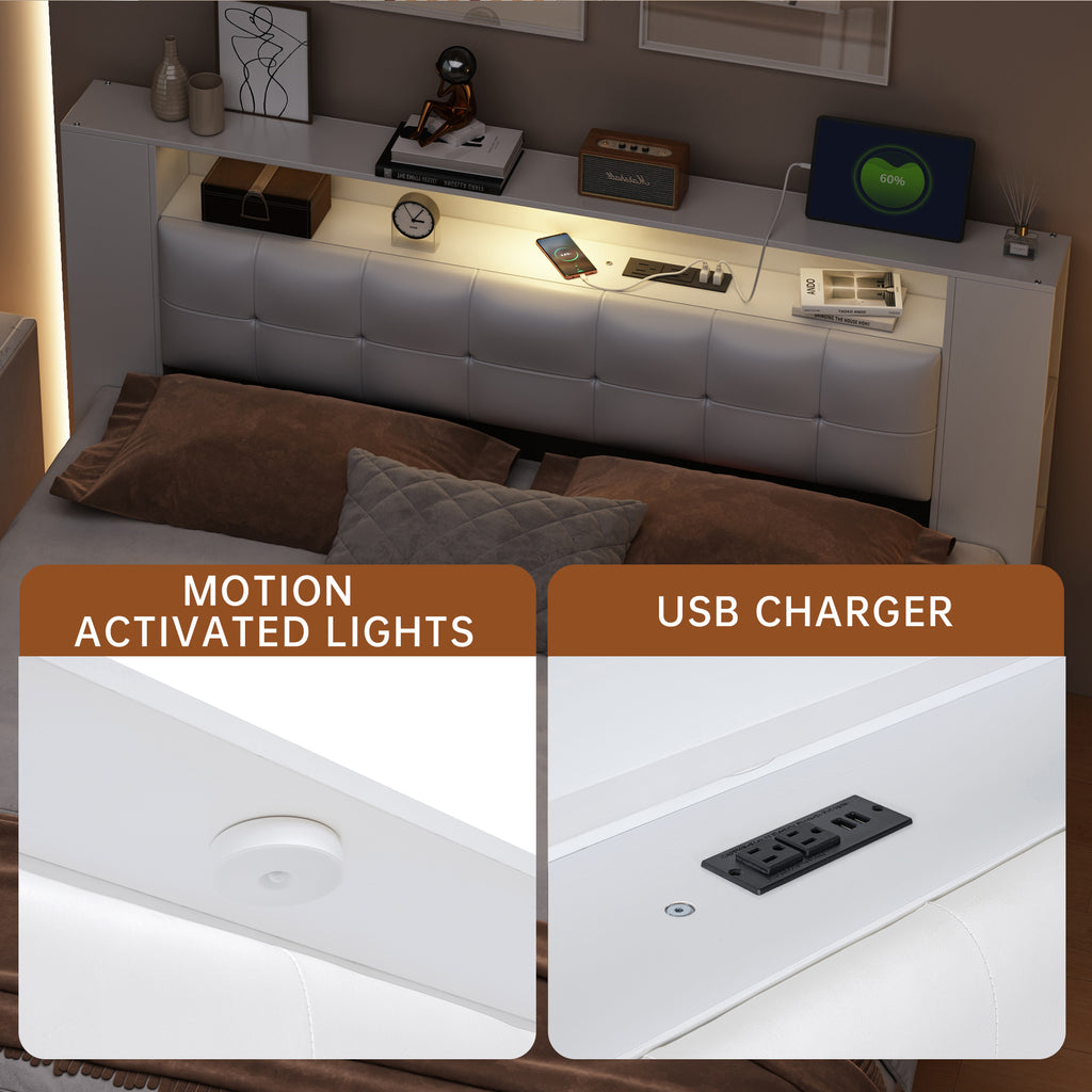 Platform Bed with Hydraulic Storage System,PU Bed with Motion Activated Night Lights and USB Charger