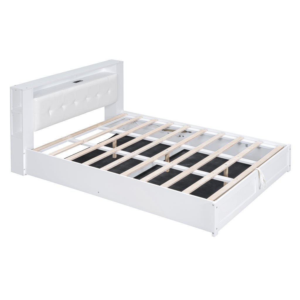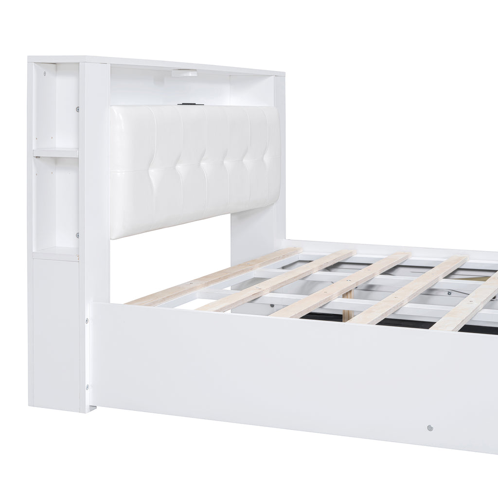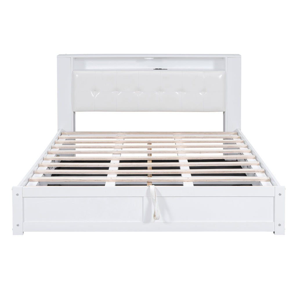 Platform Bed with Hydraulic Storage System,PU Bed with Motion Activated Night Lights and USB Charger