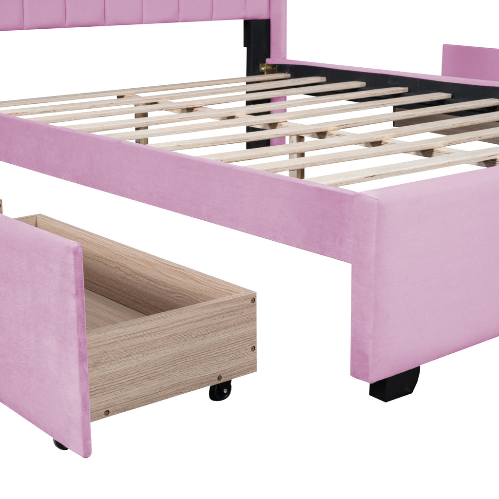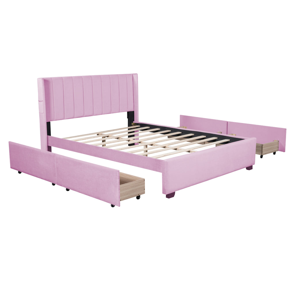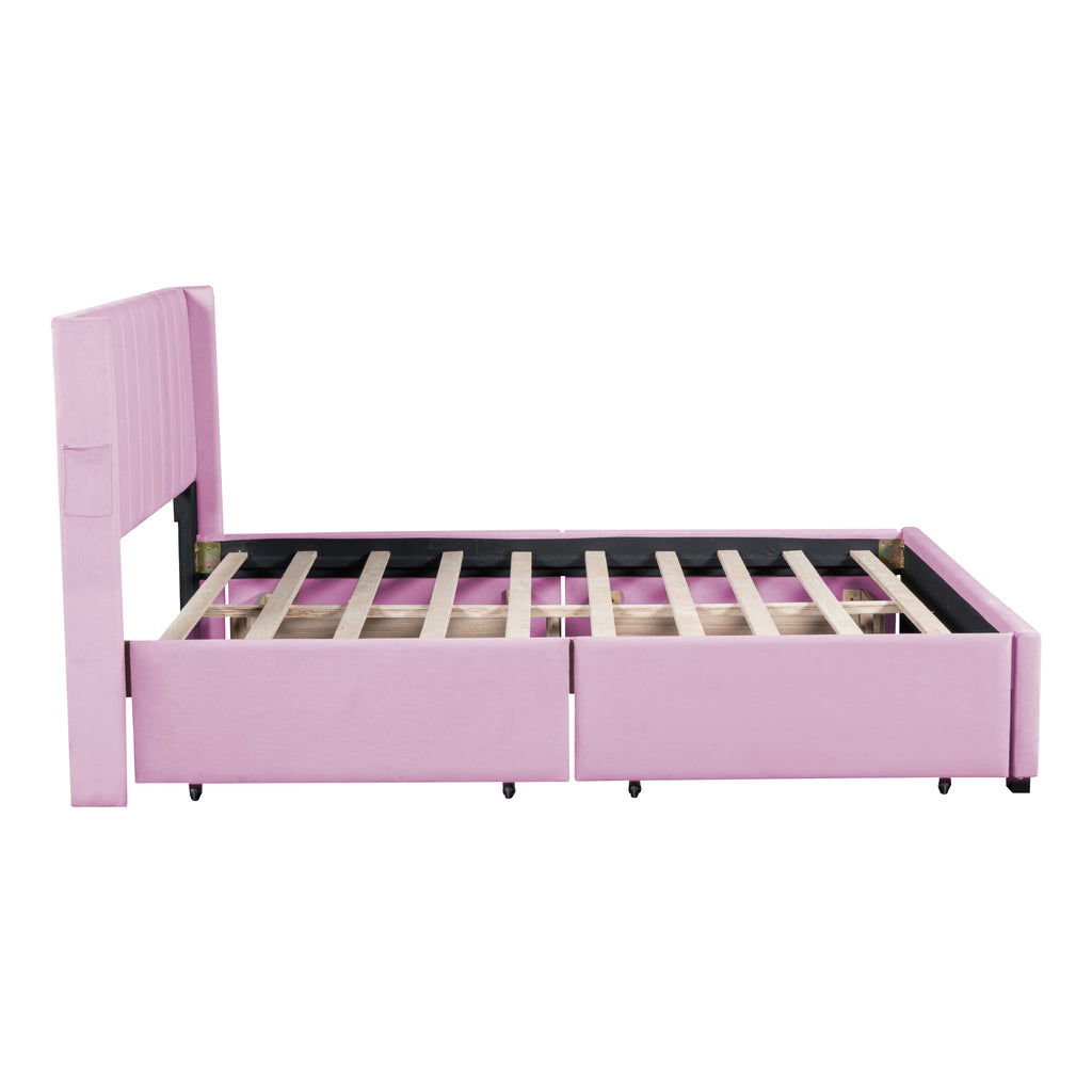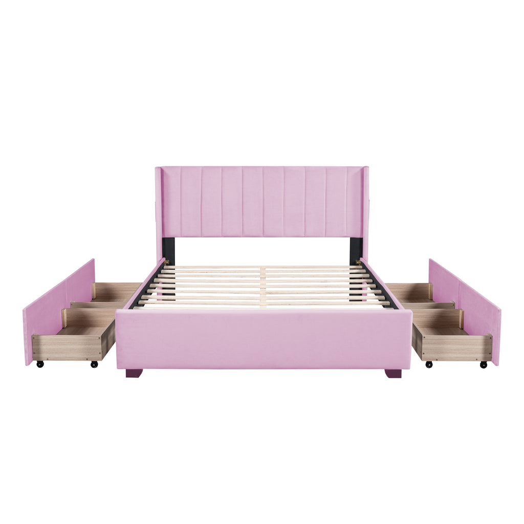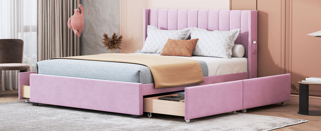 - [Storage space] This bed frame has four drawers with wheels for easy storage. Simply slide out the drawers to store extra bedding, clothes, or essentials right under your mattress. Enjoy a clutter-free space and the convenience of having everything within reach.