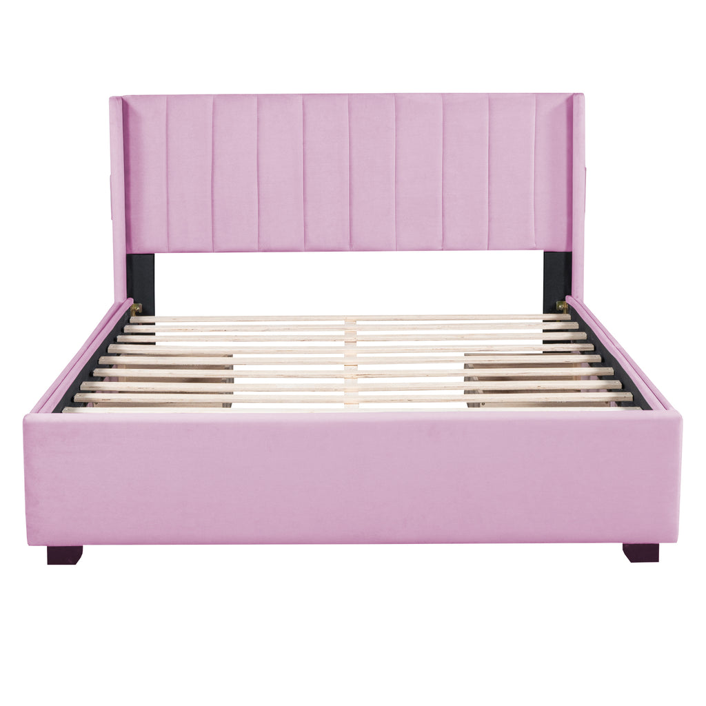 - [Modern Design] Velvet-Upholstered platform bed with beautiful finish has a sleek exterior profile, built-in headboard and footboard, with clean lines for a timeless look.