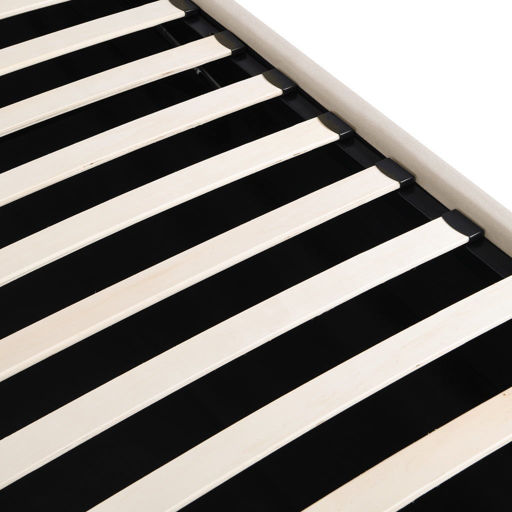 - [Elegant Design] Upholstered in carefully-selected linen fabric, and with docorative details, this platform bed not only suits any home décor, but is timeless in its design. The soft textile bedhead creates coziness, while the single color of the design creates versatility.
