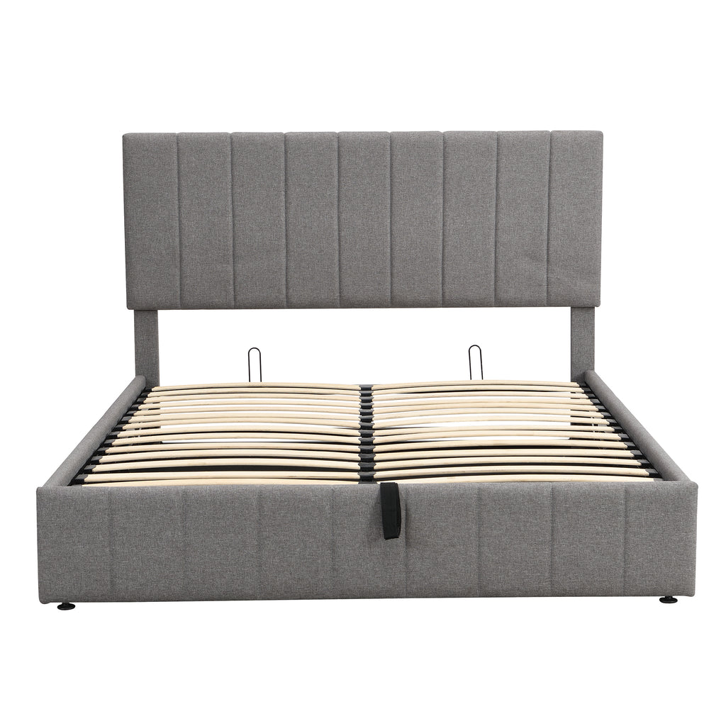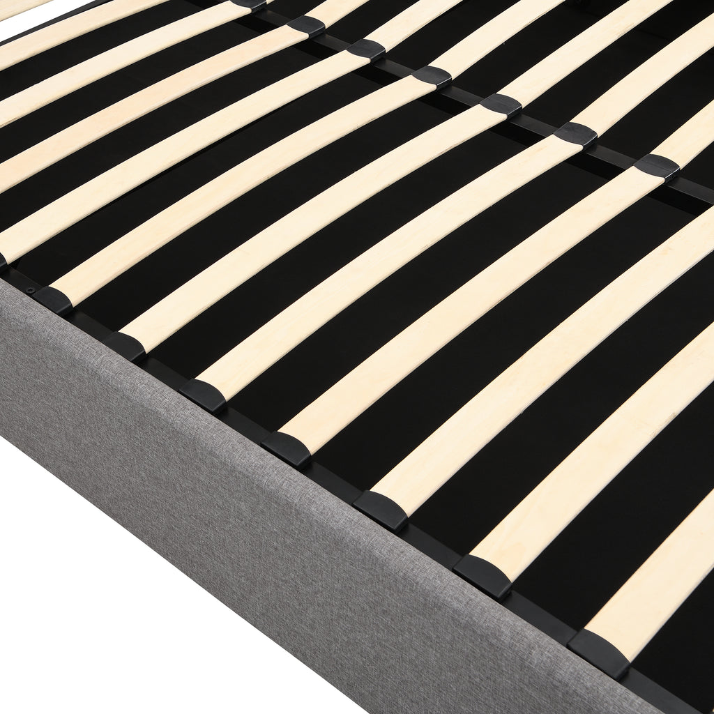 - [No Box Spring required] With 24 reinforced slats, the mattress (not included) will be well supported and your body weight will be evenly distributed for a great sleeping experience. Enjoy the convenience and unparalleled ease of use that this queen size wood platform bed provides. Headboard is included as a comfy linen fabric backrest that brings you and your partner a cozy feeling.