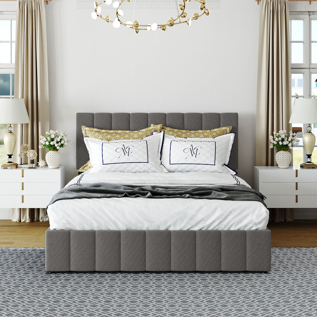 - [Elegant Design] Upholstered in carefully-selected linen fabric, in elegant beige, and with docorative details, this platform bed not only suits any home décor, but is timeless in its design. The soft textile bedhead creates coziness, while the single color of the design creates versatility.