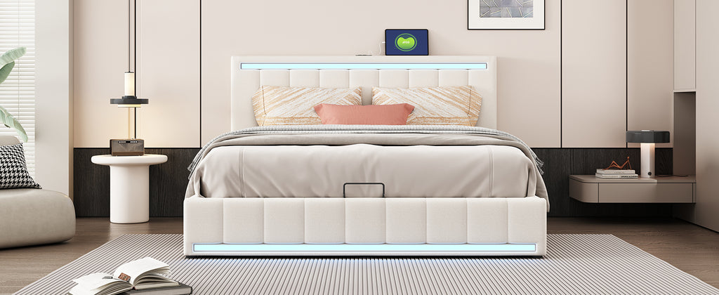 - [Hydraulic storage system] The hydraulic storage system underneath the mattress is perfect for you to store quilts, bed sheets and other necessities. Functional and aesthetic, this platform bed will enhance any bedroom.