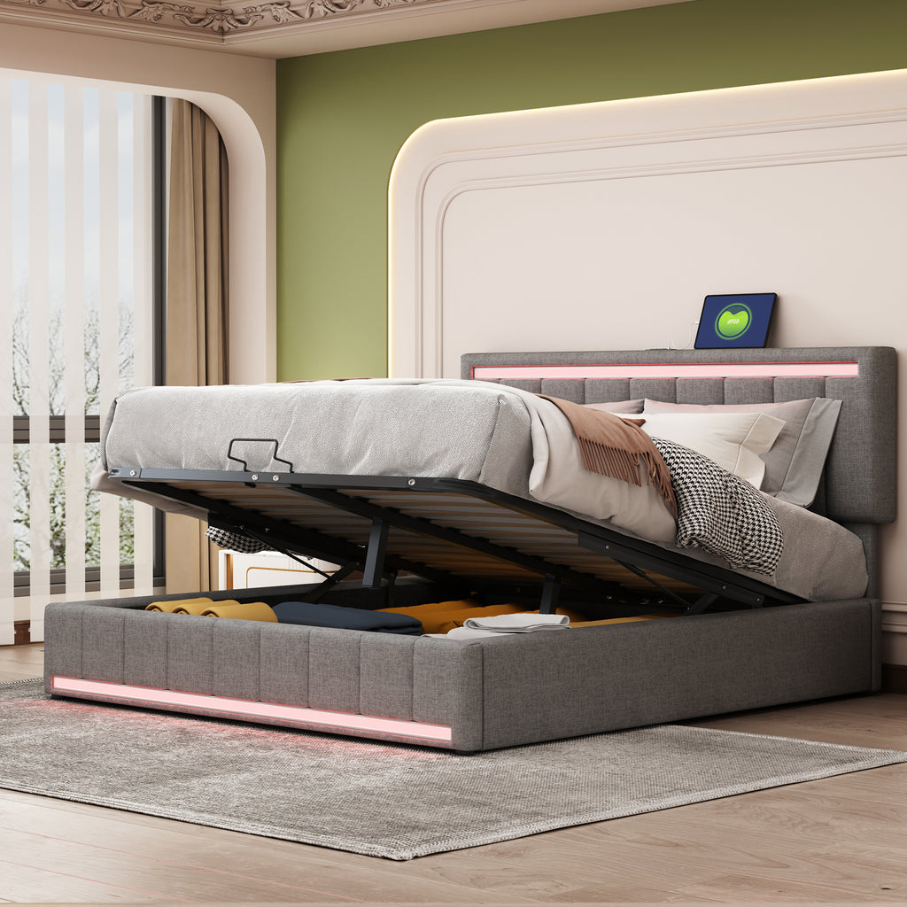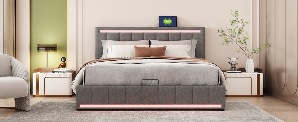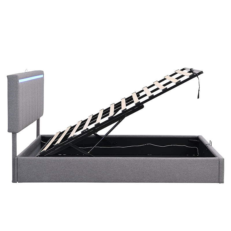 - [Hydraulic storage system] The hydraulic storage system underneath the mattress is perfect for you to store quilts, bed sheets and other necessities. Functional and aesthetic, this platform bed will enhance any bedroom.