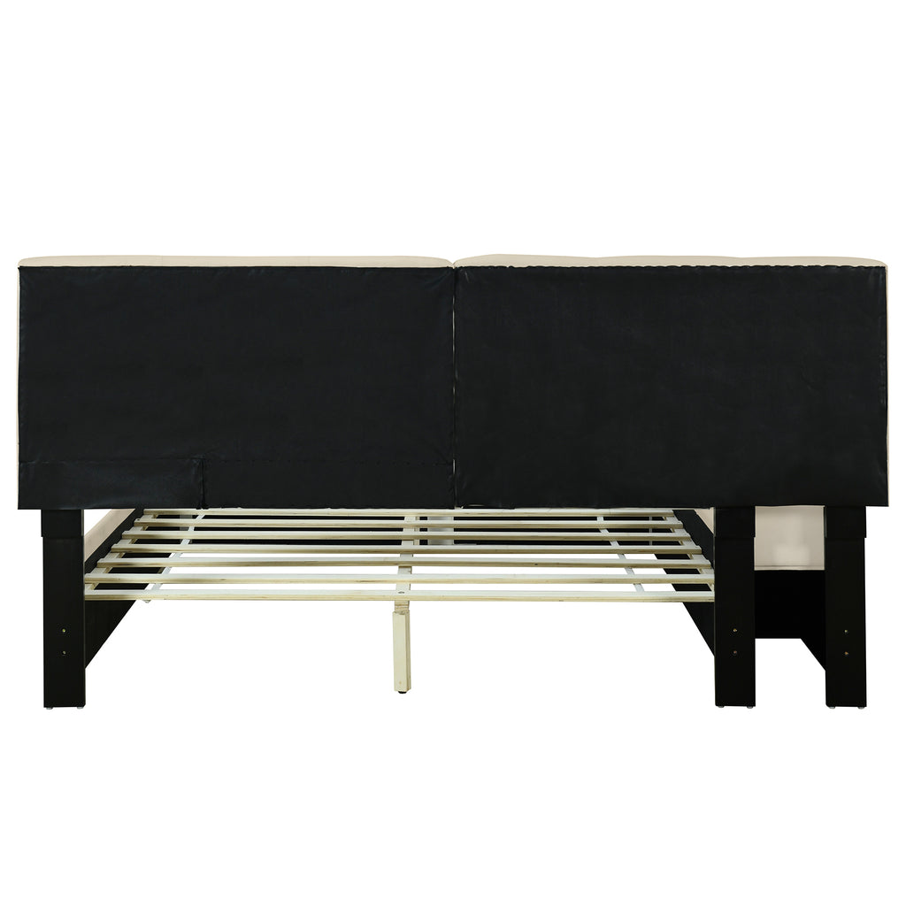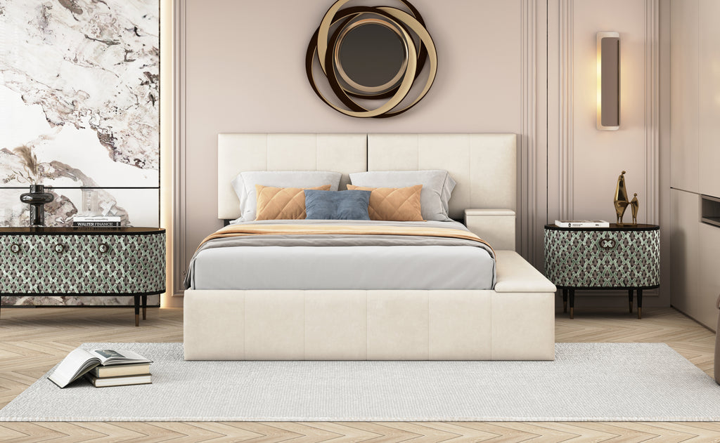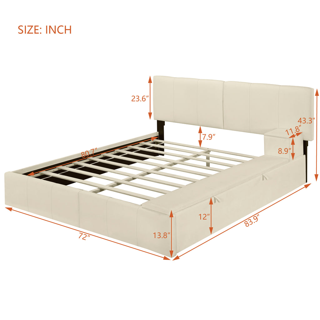 - [Maximized space]This platform bed with lateral storage compartments can offer plenty of space for you to store your home items and the upper part can be used as a cup holder for you.The storage compartments can be installed on either side and can be used as cushion.It is convenient and functional.
