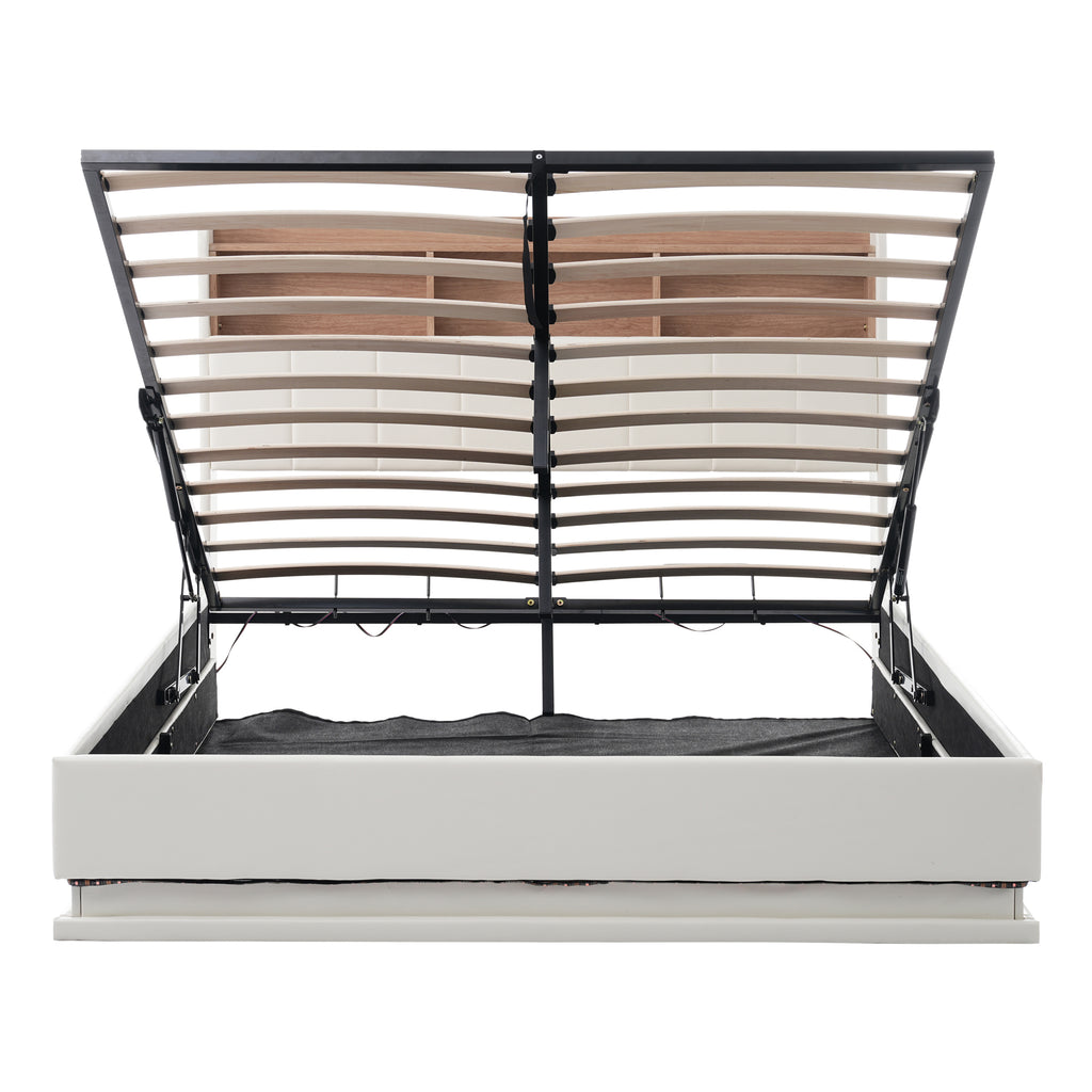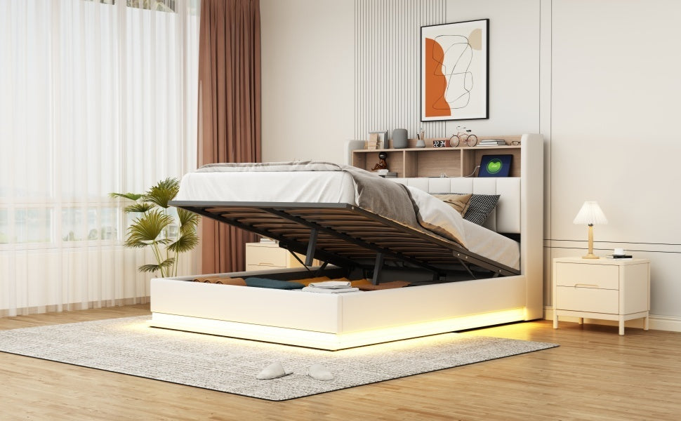 Platform Bed withStorage Headboard and Hydraulic Storage System, Bed with LED Lights and USB charger